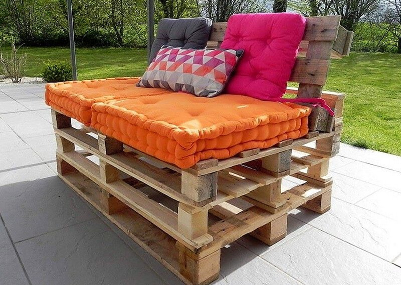 Los bancos se hacen de la siguiente manera: una paleta estándar se divide en dos partes desiguales. Un fragmento con cuatro tablas desempeña el papel de un asiento y un elemento con tres respaldos. Las piezas se sujetan con tornillos o tornillos autorroscantes, fijación simple o doble. El fortalecimiento de los sujetadores se lleva a cabo utilizando barras. Del resto de las tablas, se obtienen 4 patas, idealmente anchas y cortas. Están conectados no solo con hardware, sino también con esquinas. Al final, la parte posterior está decorada: dan una forma redondeada, a veces pintada. Los sillones se hacen de esta manera, pero el ensamblaje se puede hacer doblando las paletas una encima de la otra y resaltando un pequeño respaldo. Sofás en forma de U, de esquina y rectos también se recogen de paletas. Para este propósito, las paletas se combinan en una línea de la forma deseada, en dos niveles verticales. Después de eso, la pregunta sobre las piernas permanecerá abierta. No puedes hacerlos. Al final, abroche el respaldo, eligiendo la altura óptima, según los parámetros de las almohadas.
