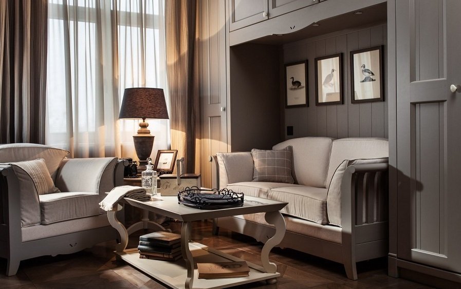 Puede elegir un sofá adecuado para cualquier dirección interior, es importante la combinación correcta de forma, volumen del producto y tapicería.