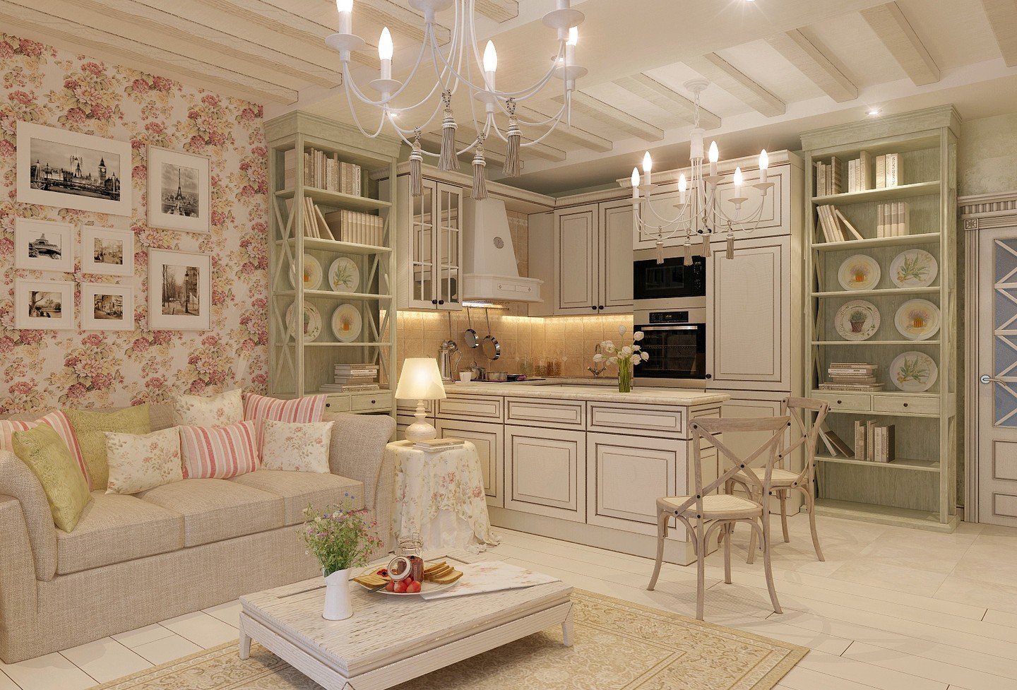 Un sofá con una falda doblada que cubre las piernas es adecuado para una sala de estar de estilo rústico, y las almohadas decorativas en una flor, una jaula, una tira adornada con volantes se convertirán en acentos sobre un fondo de lienzo.