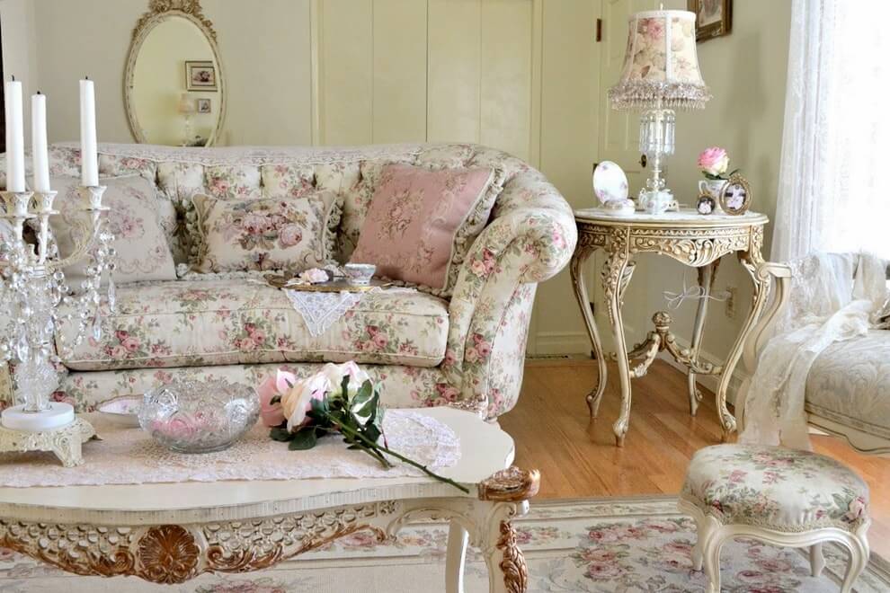 Detalles de madera tallada, un tapiz gris texturizado o un denso lienzo de tapicería, servilletas de encaje tejidas a mano unidas a la parte posterior: un sofá de este tipo puede decorar una habitación romántica o una habitación al estilo de shabby chic.