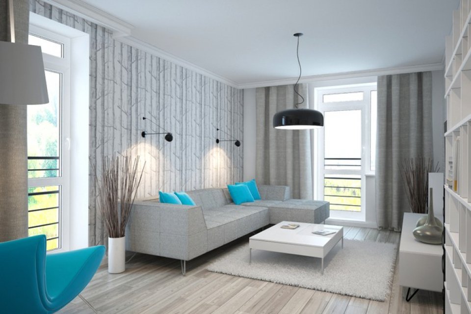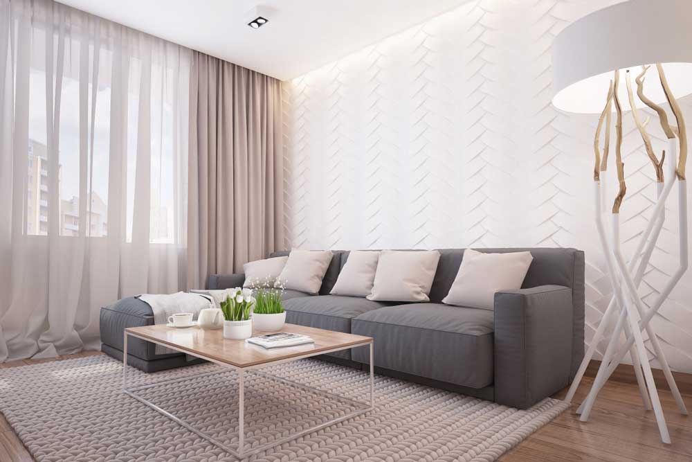 Para obtener el efecto visual necesario en el interior, es necesaria la armonía del color. El gris puede dominar, sombrear, combinar diferentes colores. Los murales en blanco y negro pueden convertirse en un fondo interesante para un sofá moderno en tonos cenicientos; el diseño excesivamente restringido de los muebles de estilo escandinavo hará que las almohadas más suaves de tonos claros de lana natural sean más suaves. Aquí puedes jugar con texturas: usa piel sintética, materiales de tejido "casero". Recientemente, las prendas de punto grandes con patrones en relieve se han puesto de moda.
