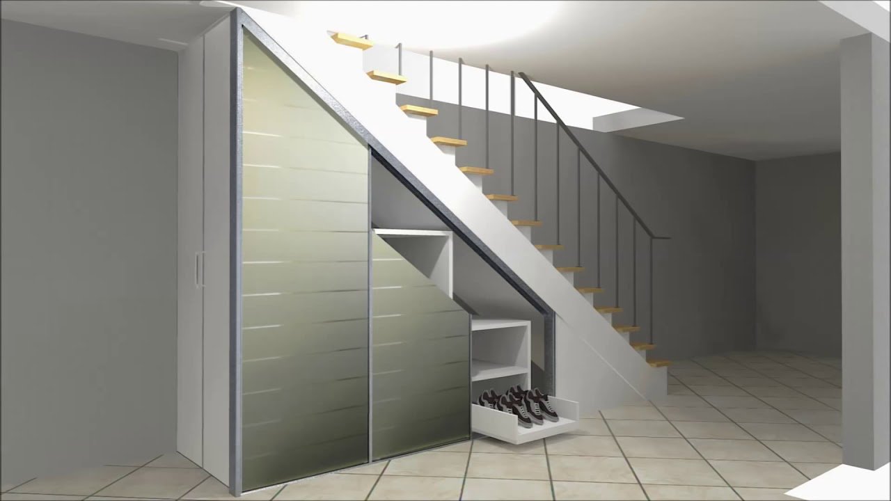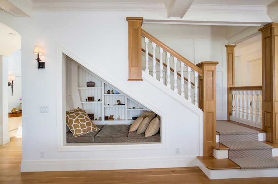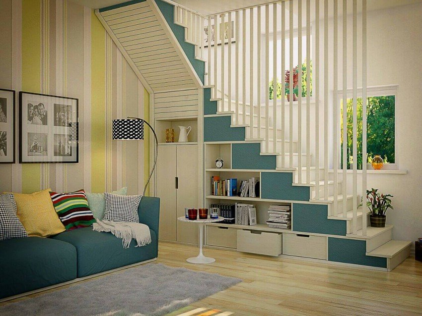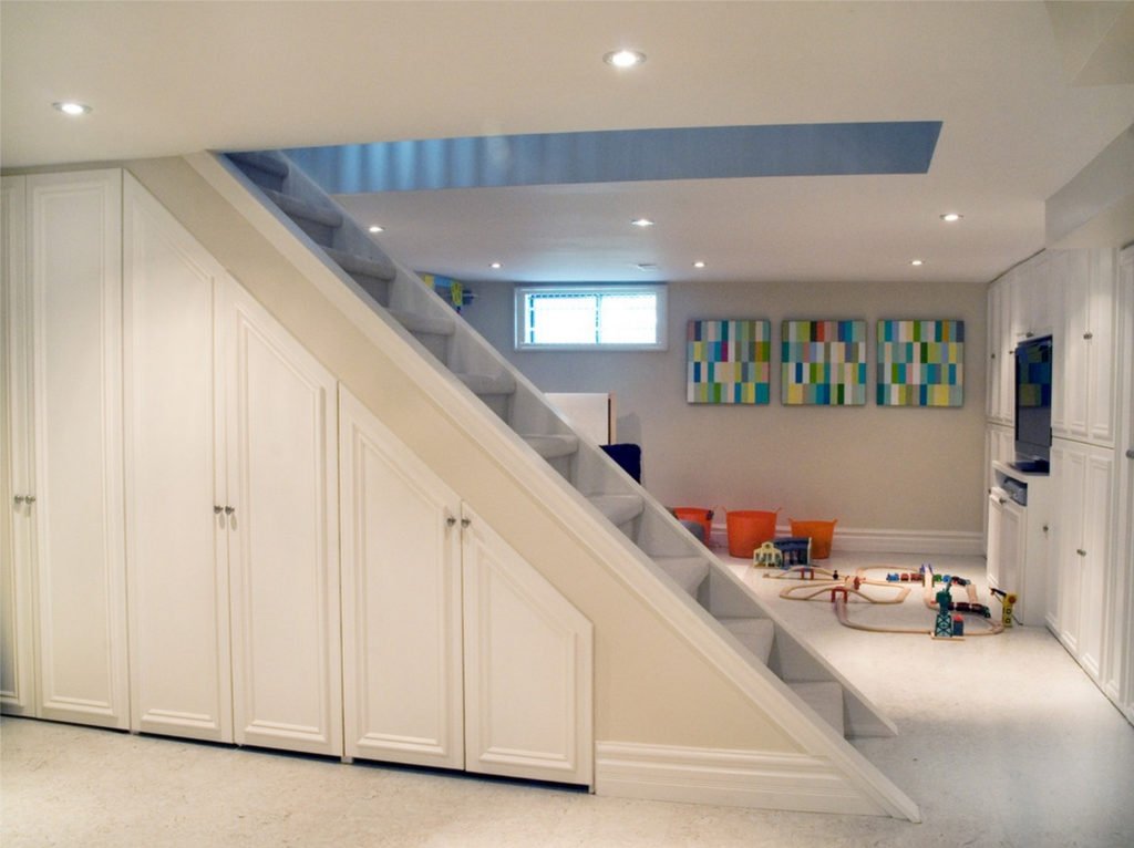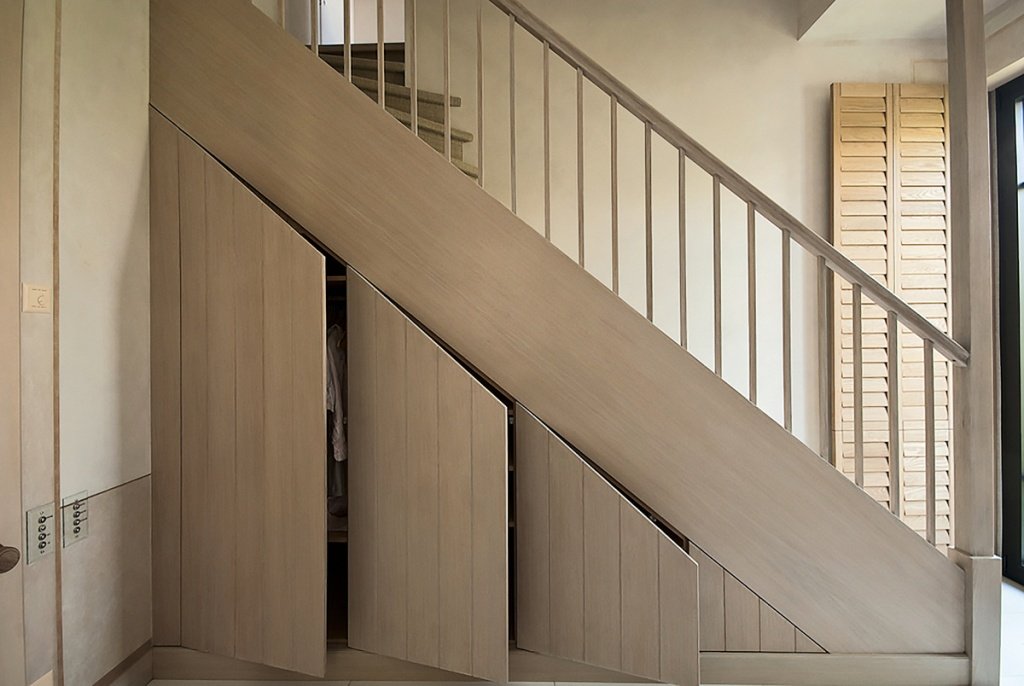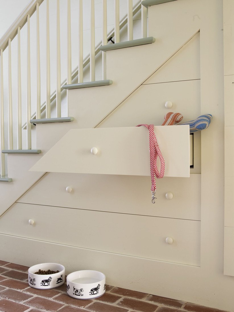 Debajo de la escalera, puede organizar una variedad de lugares de almacenamiento: