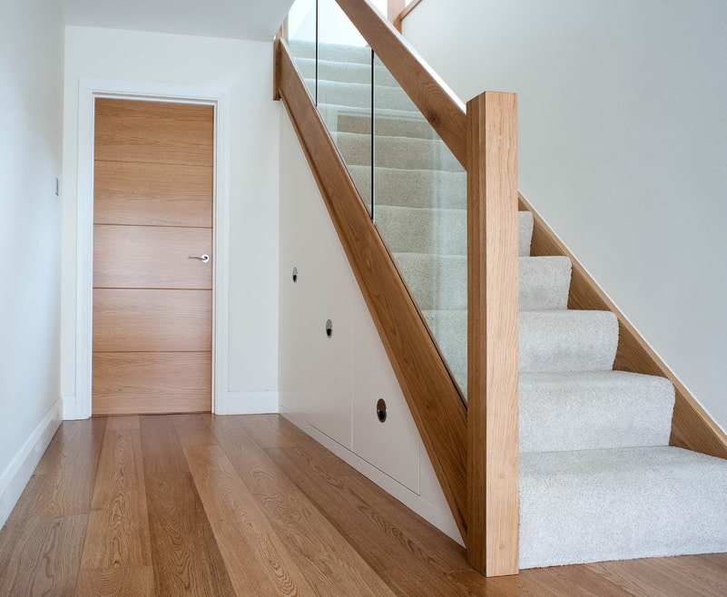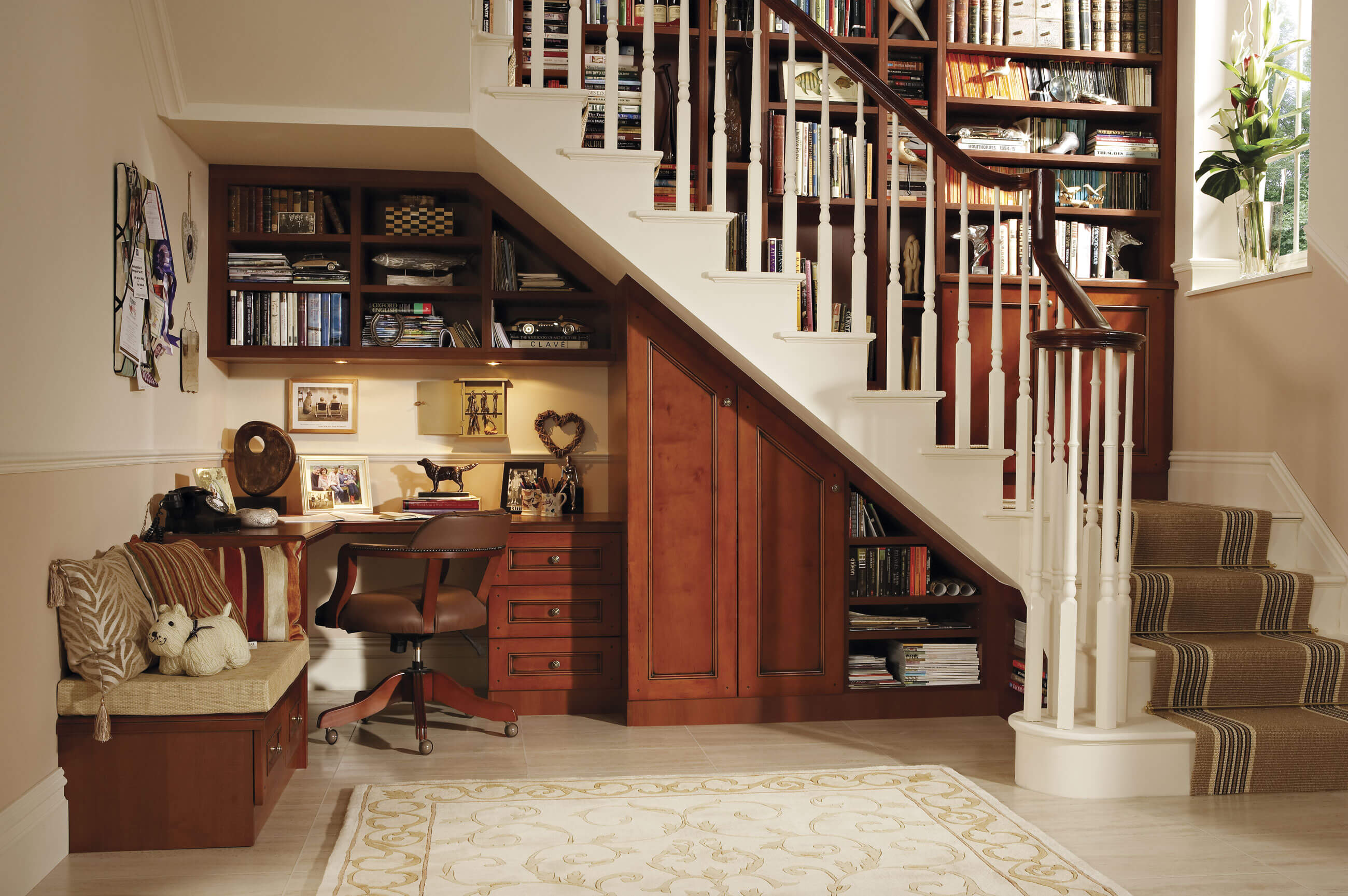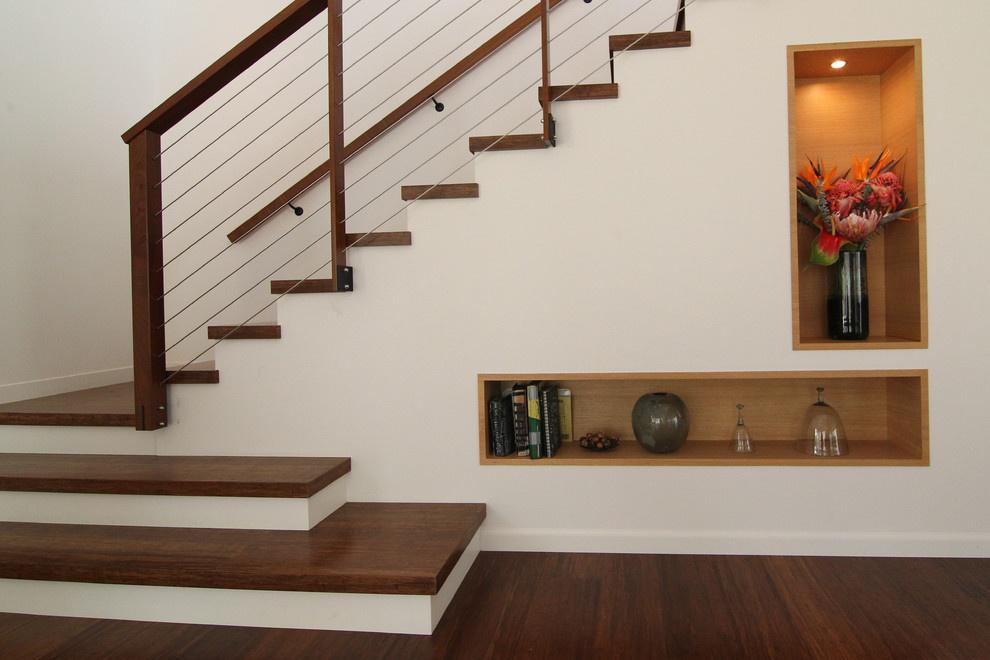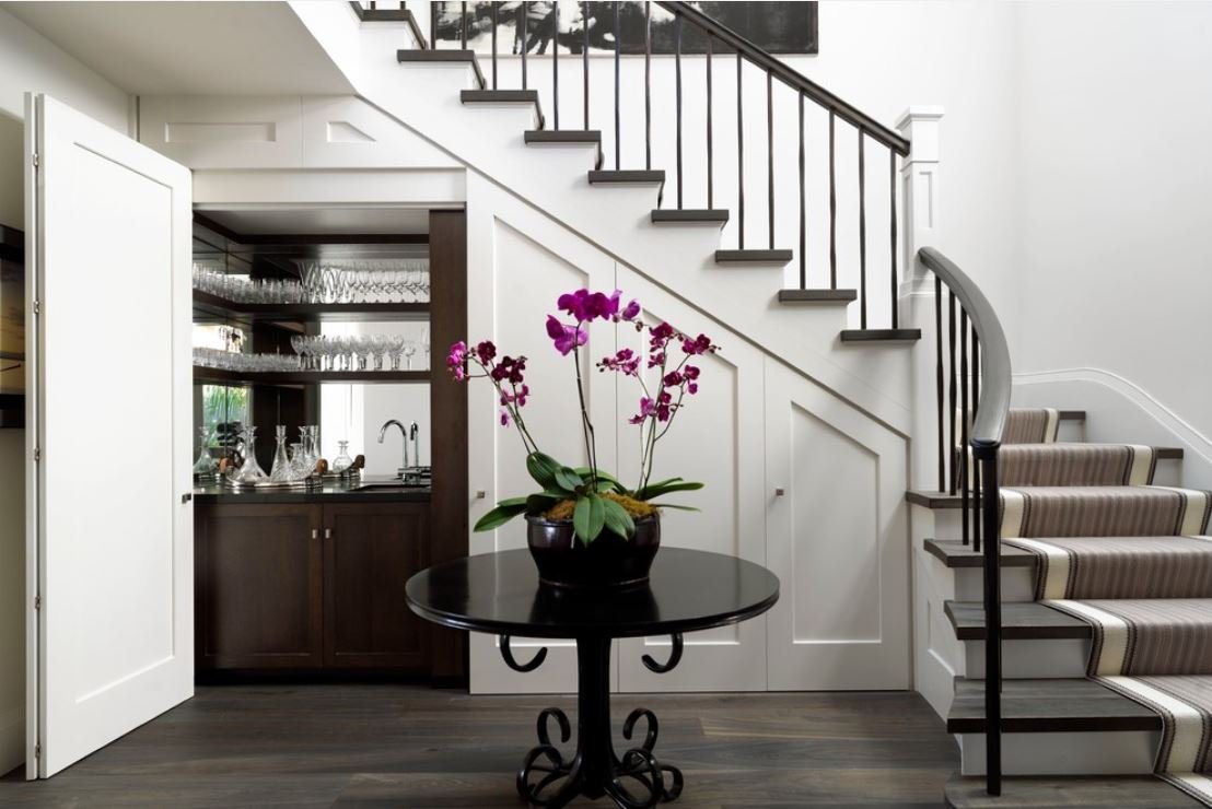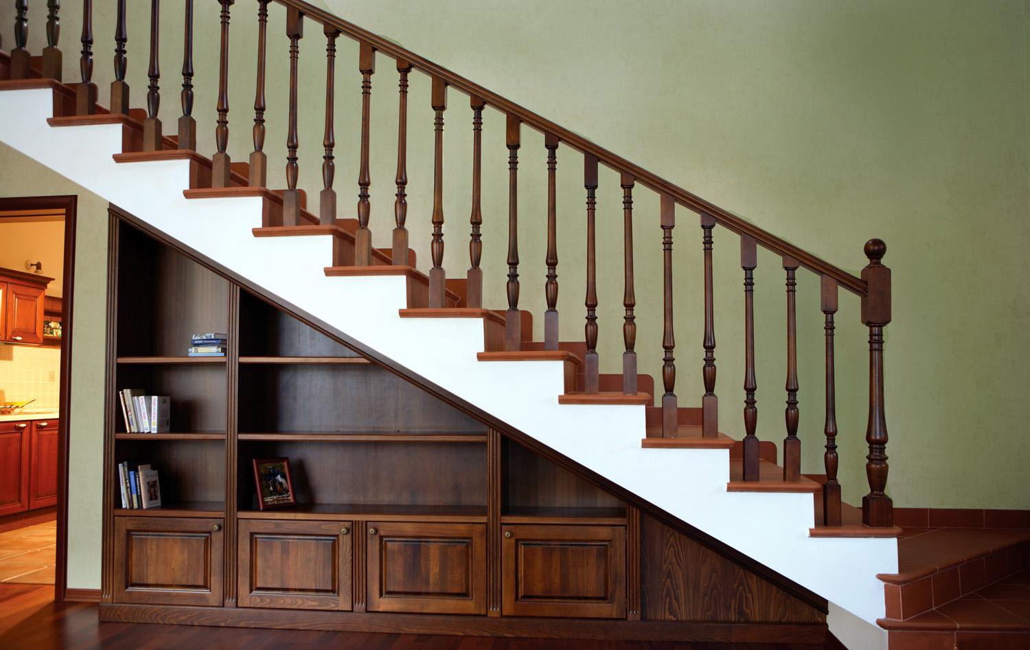 Debajo de la escalera, puede organizar una variedad de lugares de almacenamiento: