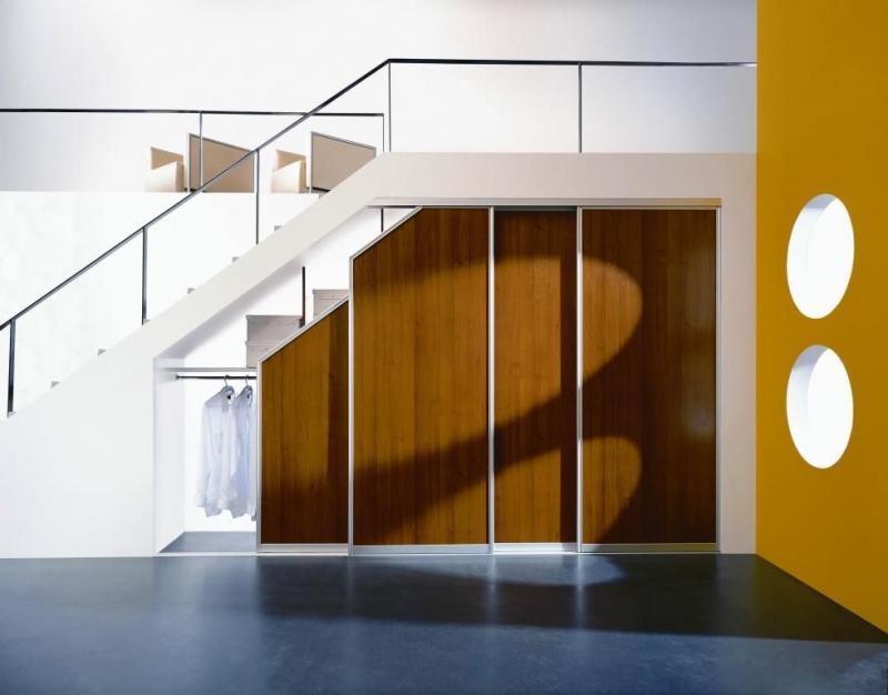Dificultad para elegir un modelo terminado. En el 90% de los casos, los propietarios de viviendas tienen que pedir un armario empotrado con proporciones individuales, ya que las escaleras son diferentes.