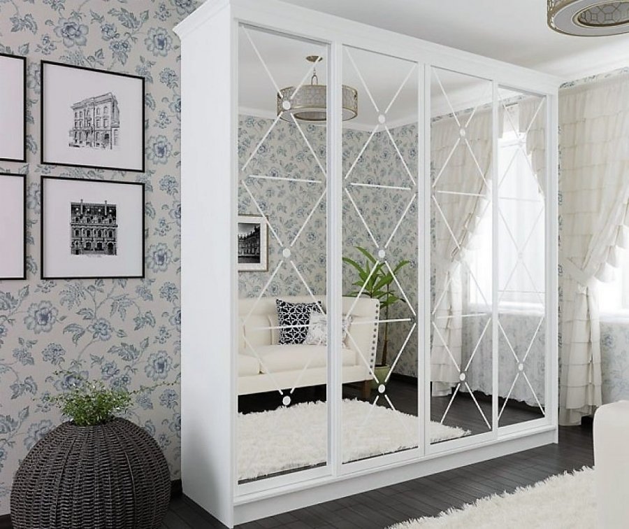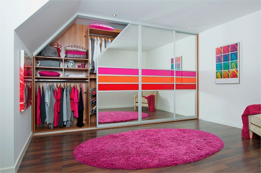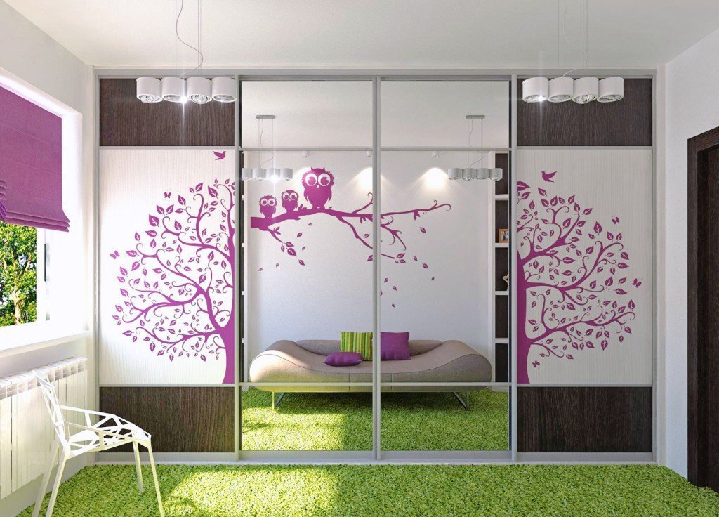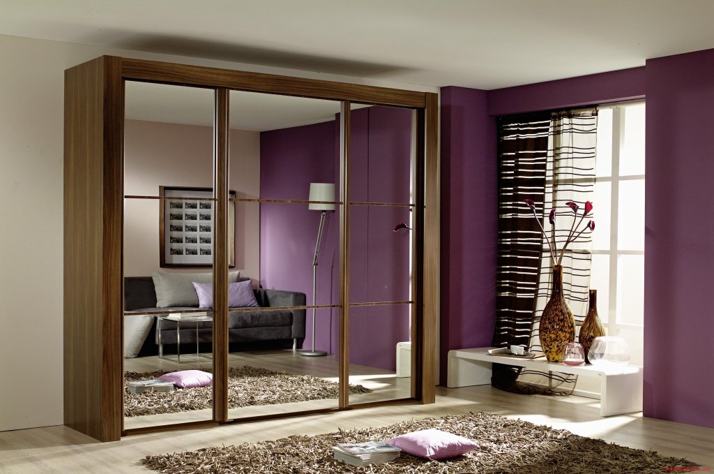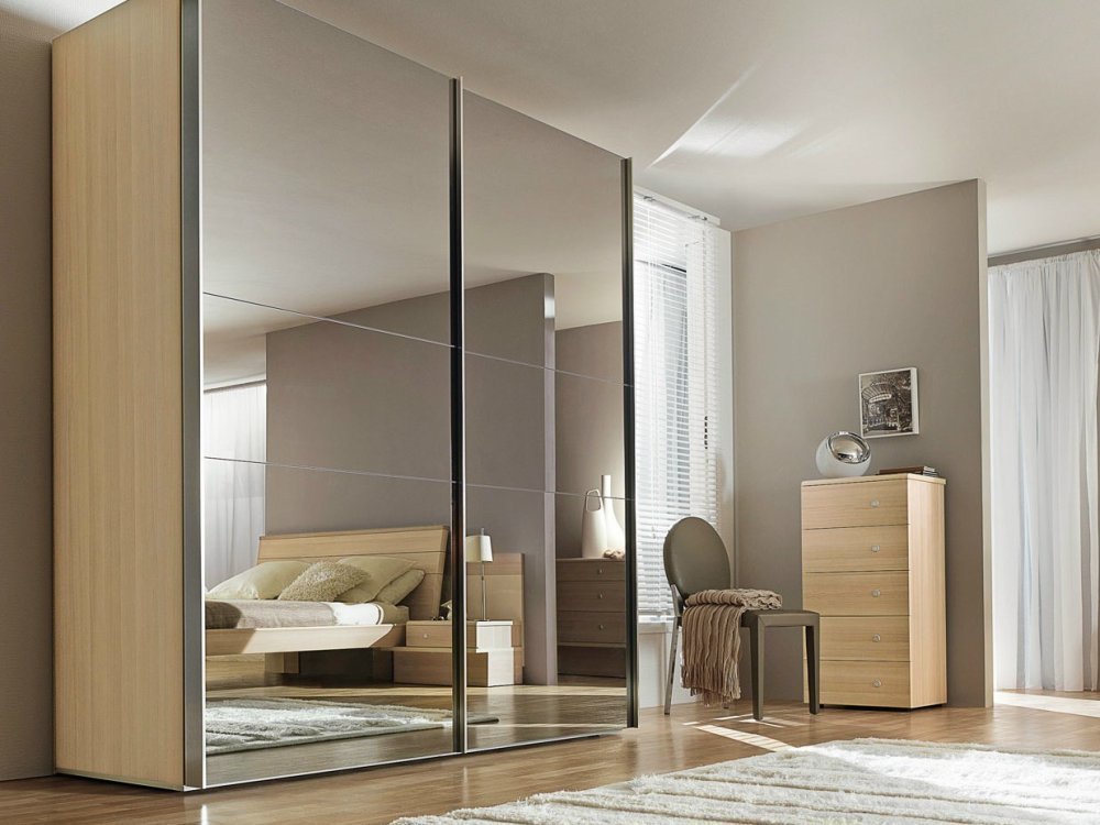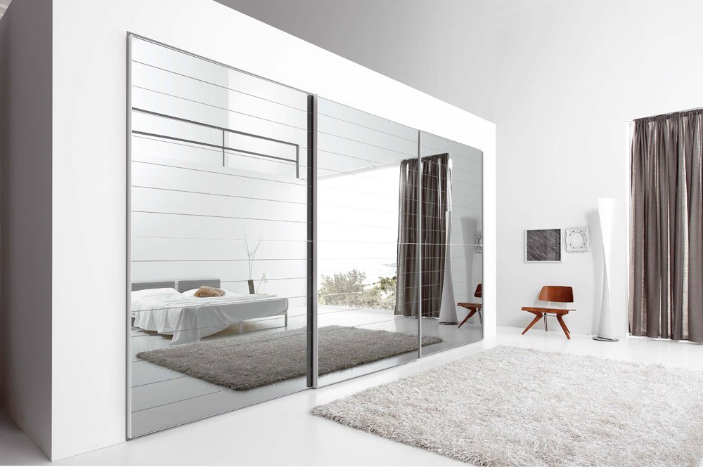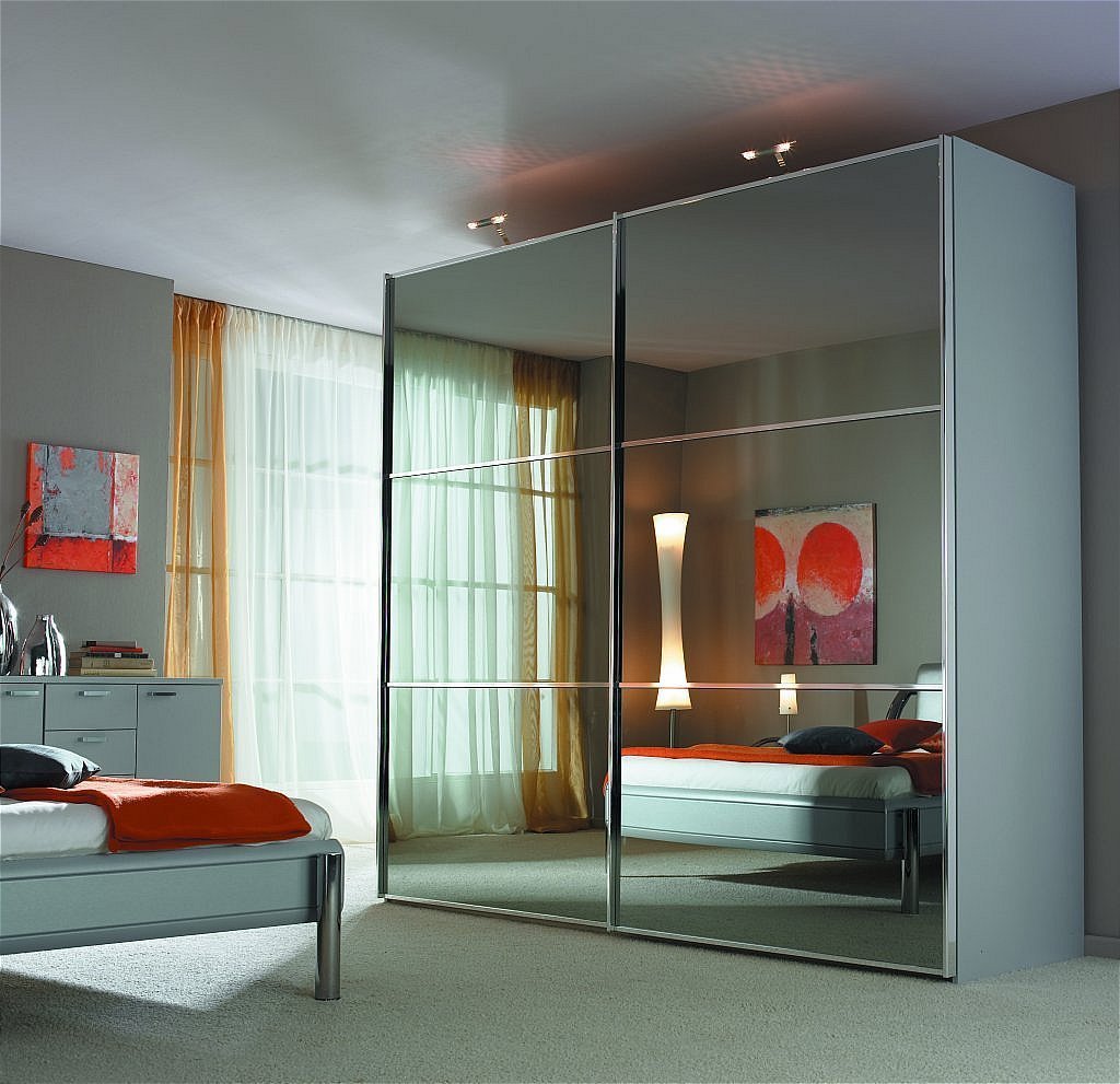 Las inserciones de espejo en las puertas le permiten aumentar visualmente el espacio de la habitación. Un espejo alto ayudará a "elevar" el techo. Pero la superficie del espejo de la fachada con 2-3 hojas proporcionará una expansión significativa del espacio. Tal superficie requiere un cuidado especial, ya que el polvo se depositará sobre ella. E incluso un ligero toque con la mano provocará suciedad y huellas dactilares. El mantenimiento de tales fachadas es simple. Se limpian con un limpiacristales doméstico. Las inserciones de espejo son adecuadas para cualquier modelo. Pero no se recomienda su uso como complemento de armarios para niños. Y para los adolescentes son los más adecuados: ayudarán a los niños a evaluar el estilo y la originalidad de los atuendos utilizados.