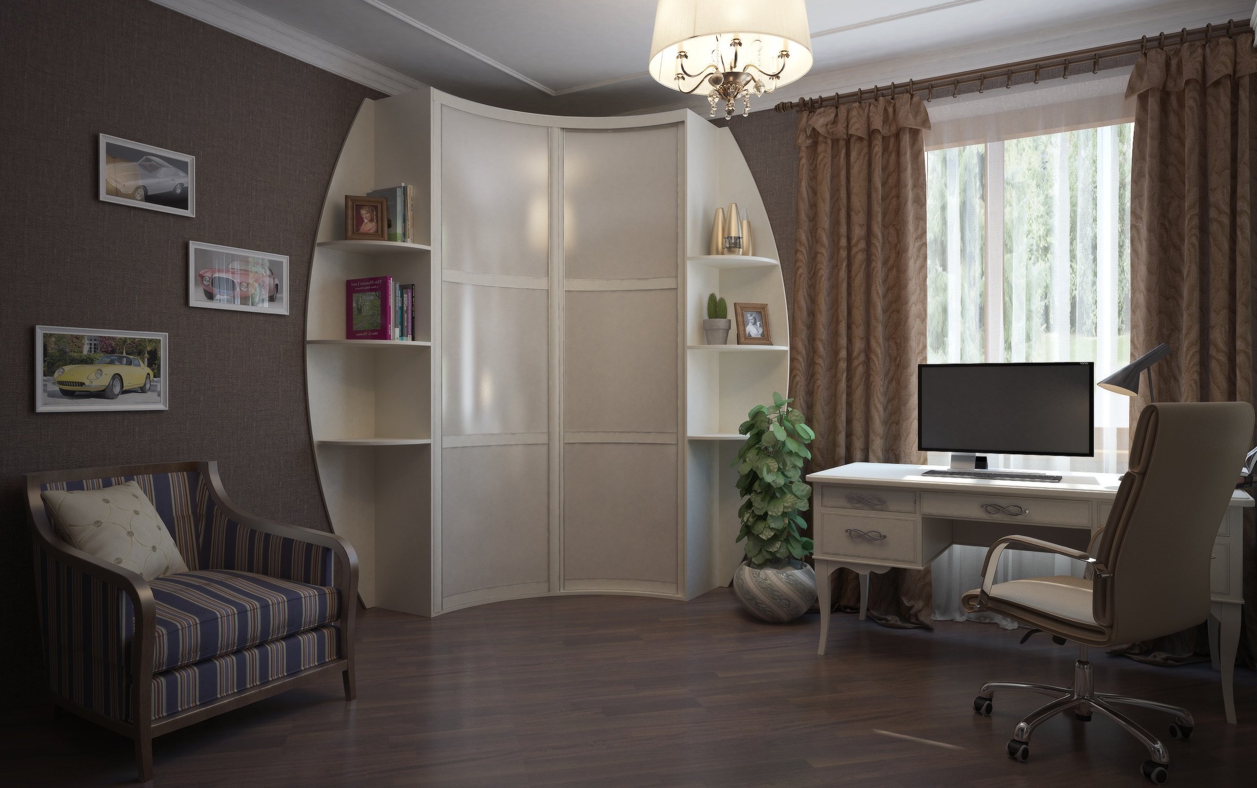 Para gabinetes de hogar y trabajo, los gabinetes deben elegirse con numerosos estantes de tipo cerrado o abierto. Los modelos con cajones, estantes son los más adecuados. Hay productos con un gran estante abierto en la parte central. Se puede instalar un televisor en él. Los gabinetes con una parte central abierta y un estante deslizante servirán como un excelente lugar de trabajo. Le permitirán almacenar cuidadosamente documentación, libros, artículos personales. Los modelos de libros para oficinas tienen una ejecución estricta y restringida. Los gabinetes para el hogar para libros y revistas están ejecutados en un diseño elegante. Se caracterizan por fachadas brillantes en tonos oscuros de lacobel. Los modelos de madera también se ven armoniosos.