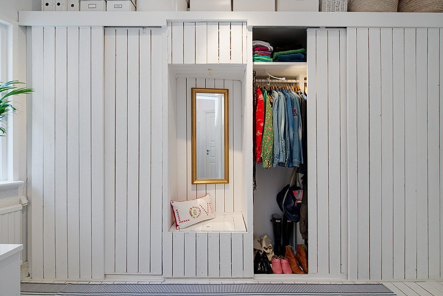 La instalación de un gabinete para almacenar cosas en el pasillo o pasillo se lleva a cabo para ahorrar espacio. Adecuado para Jruschov de una habitación y otras viviendas con un área pequeña. Los productos de relleno deben seleccionarse para acomodar chaquetas, zapatos, sombreros. Por lo tanto, estantes, cajones y zapateros se usan como relleno. Para sombreros y sombreros, coloque un estante grande ubicado en la parte superior. Para chaquetas, abrigos, abrigos de pieles, es mejor elegir un modelo con un pantógrafo espacioso. Pero para pañuelos y bufandas, se puede instalar una percha especial con ganchos. También es útil para colgar bolsos. Un par de estanterías para pequeñas cosas no serán superfluas: llaves, peines.