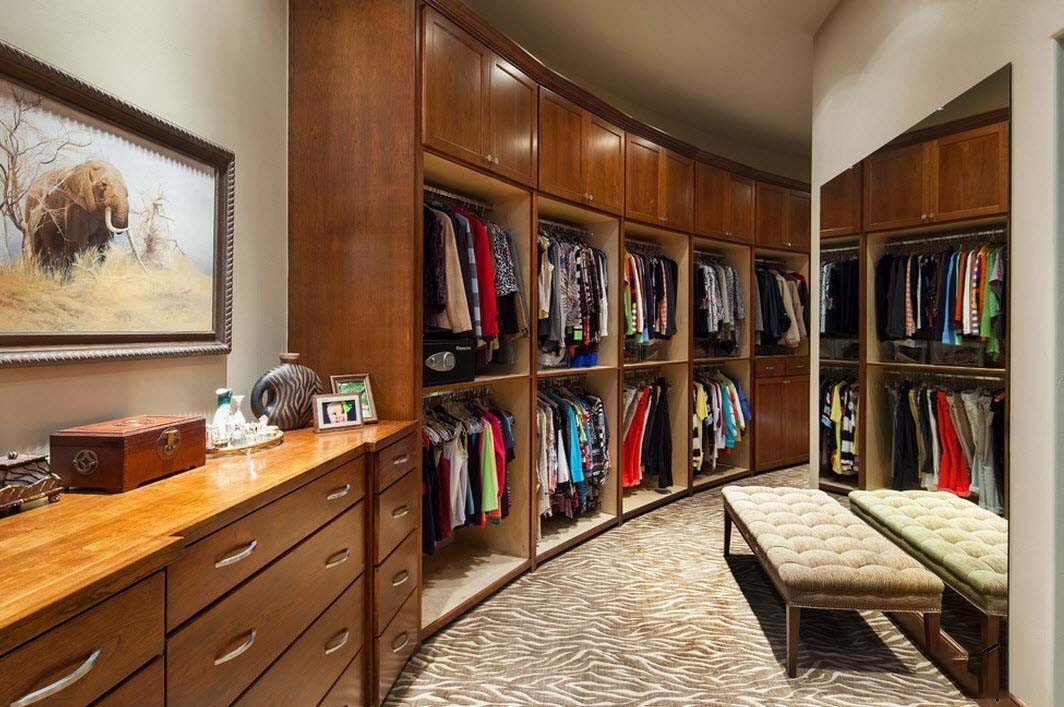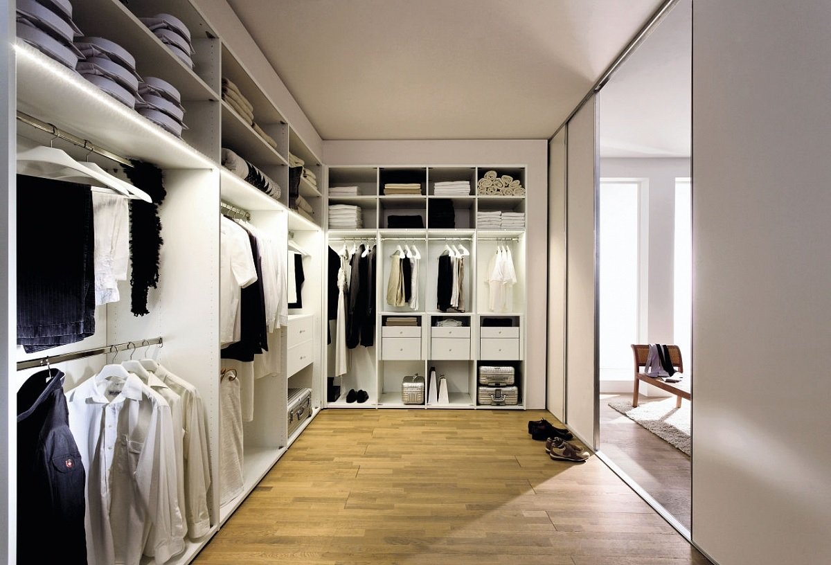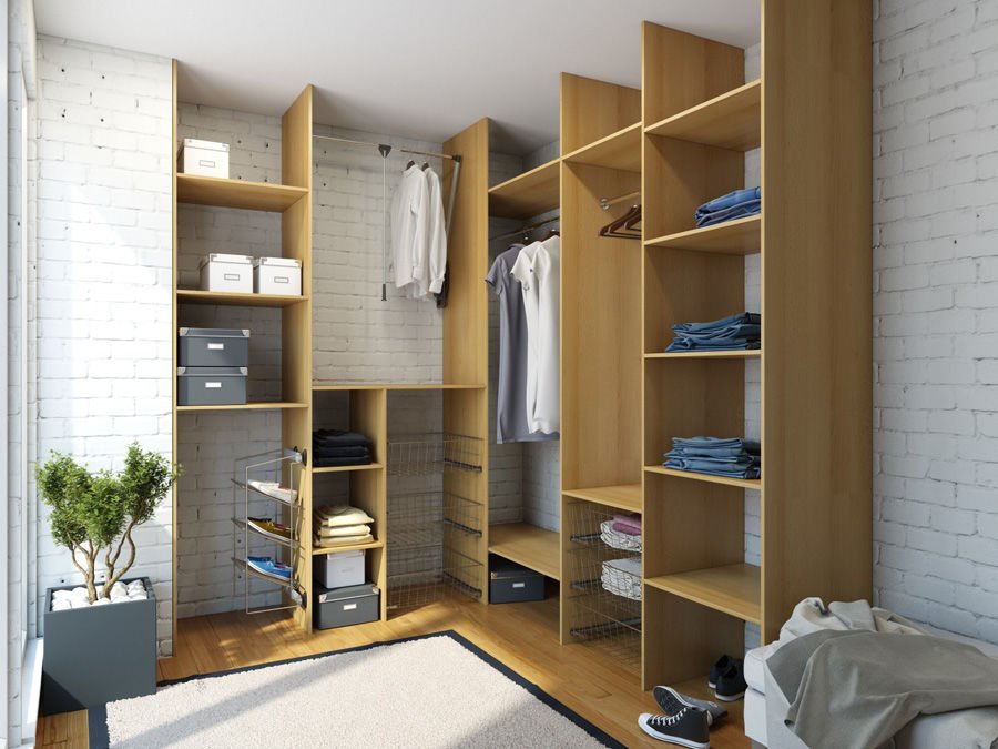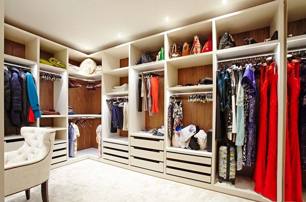 Puede equipar un armario conveniente en cualquier rincón de la casa o apartamento. Esto no requiere mucho espacio. Dependiendo de las características del espacio, elija el tipo de diseño de dicha habitación. En habitaciones pequeñas, haga una disposición lineal y angular. Amplios armarios están equipados con muebles a lo largo de tres paredes.