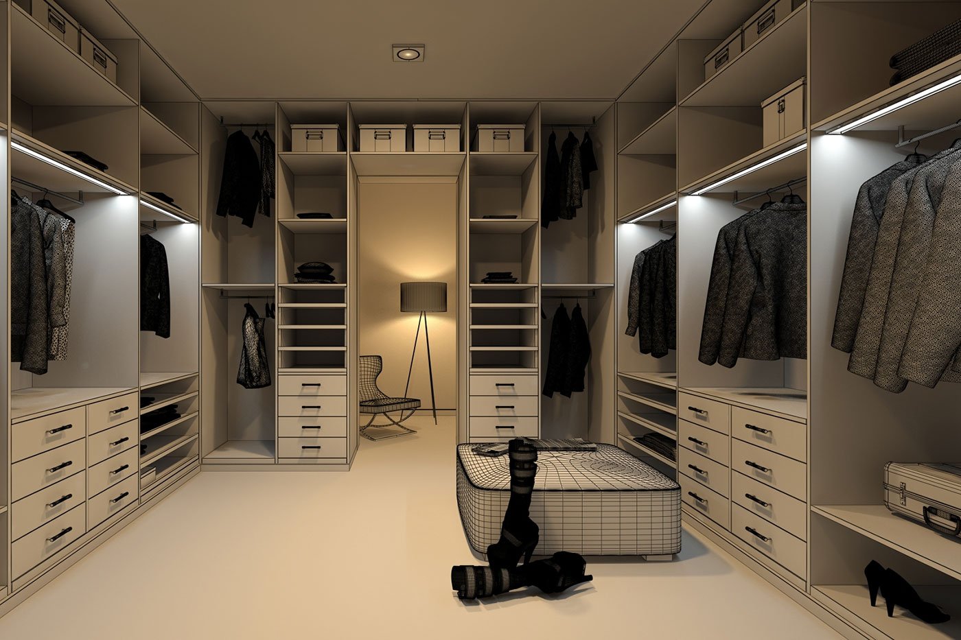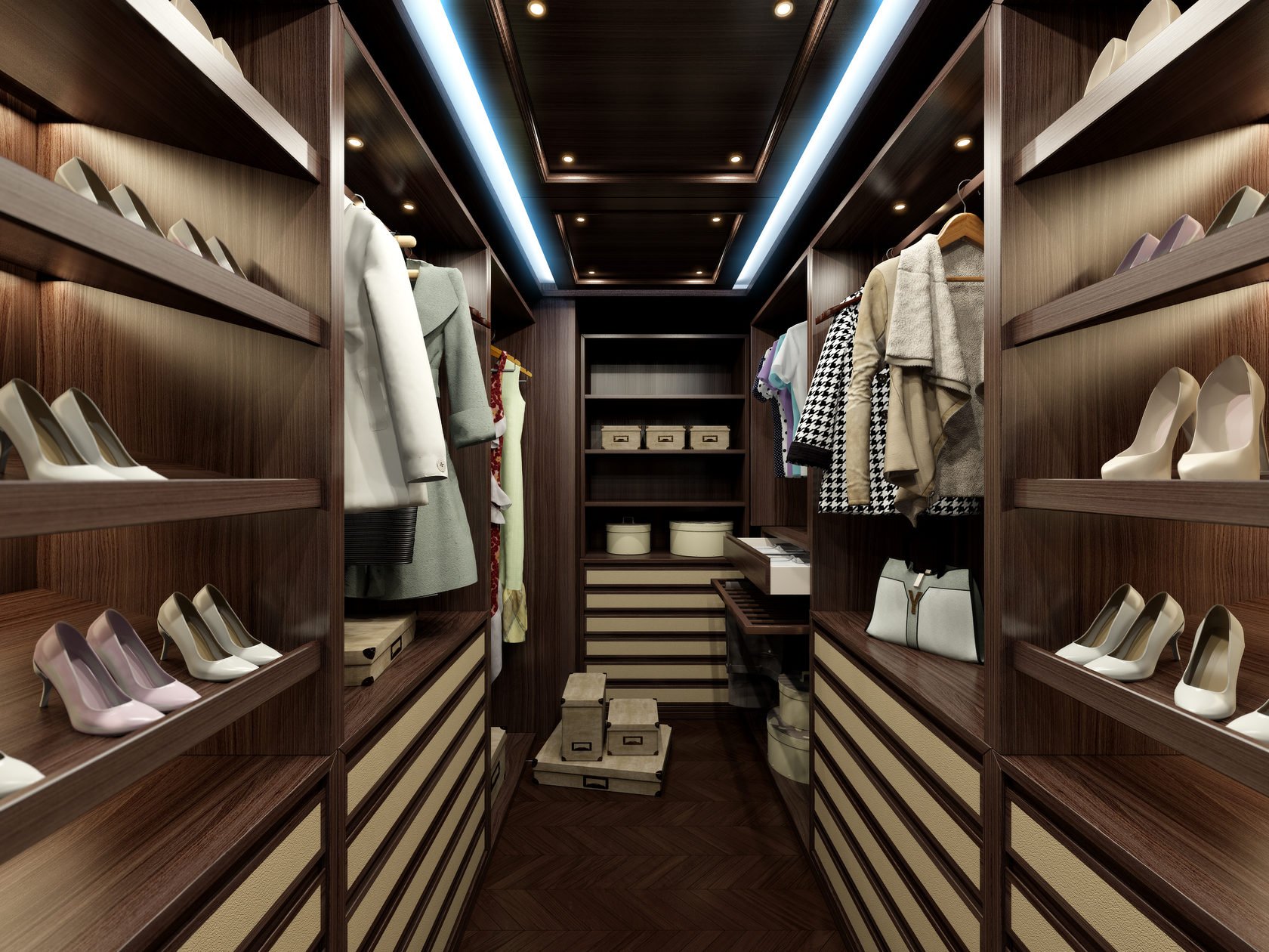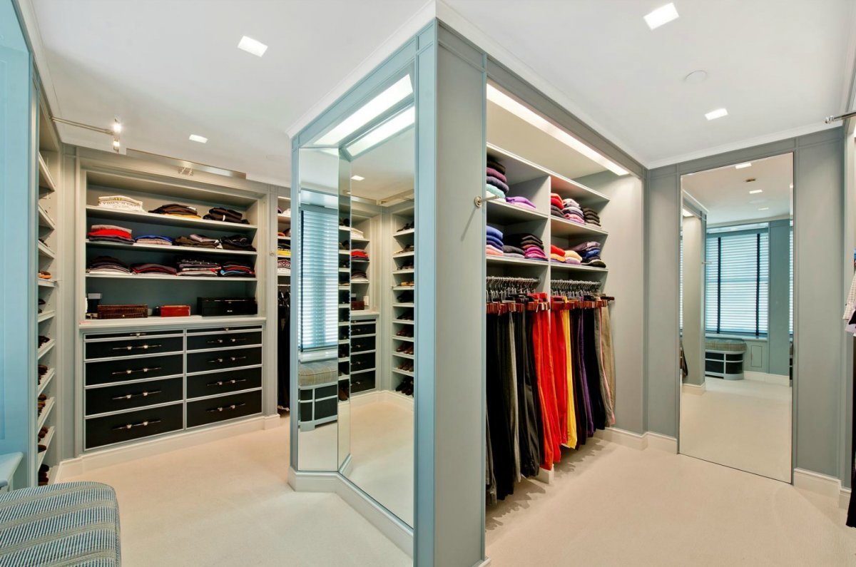Puede equipar un armario conveniente en cualquier rincón de la casa o apartamento. Esto no requiere mucho espacio. Dependiendo de las características del espacio, elija el tipo de diseño de dicha habitación. En habitaciones pequeñas, haga una disposición lineal y angular. Amplios armarios están equipados con muebles a lo largo de tres paredes.