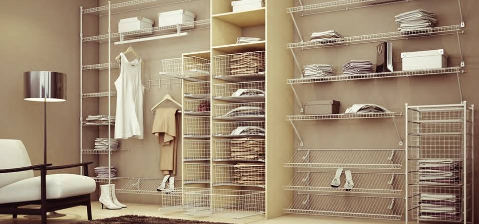 Las estructuras suspendidas con una base de malla se montan horizontalmente en la pared. Los recipientes de tipo celda abierta permiten que las cosas respiren, hacen que sea más fácil encontrar la ropa necesaria. Su ancho se puede ajustar fácilmente. Es suficiente mover los corredores especiales en la barra de guía. Las estructuras de malla pueden hacerse estacionarias y extensibles, complementadas con un par de tijeras, cestas de zapatos.