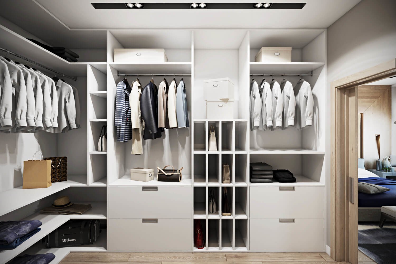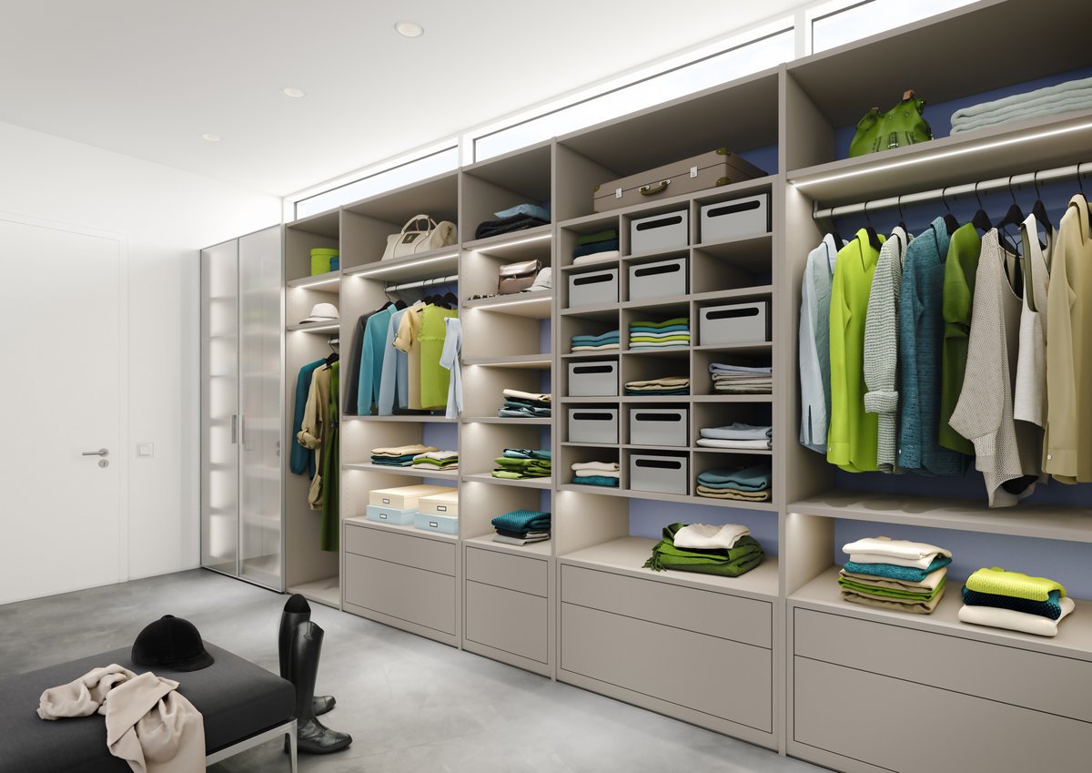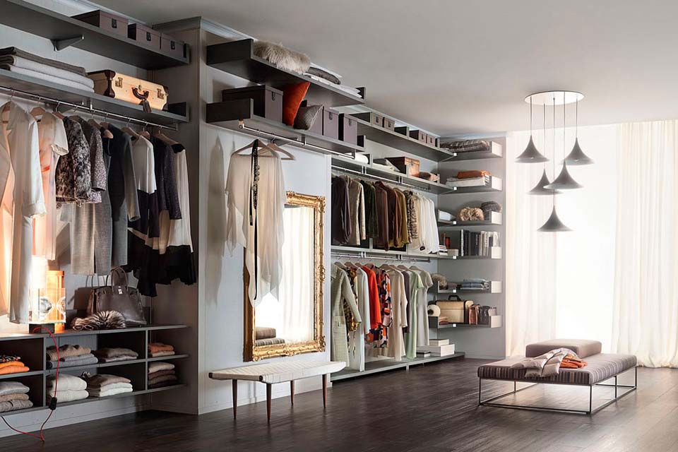 Los sistemas de almacenamiento pueden ser elementos independientes o todo el complejo. Una opción ideal para organizar un vestidor es una habitación separada. Pero si esto no es posible, puede usar mini-opciones portátiles, diseños modulares. Los bastidores, gabinetes y celdas ubicados adecuadamente le permiten sistematizar la ropa, dividiéndola por temporada, género y propósito.