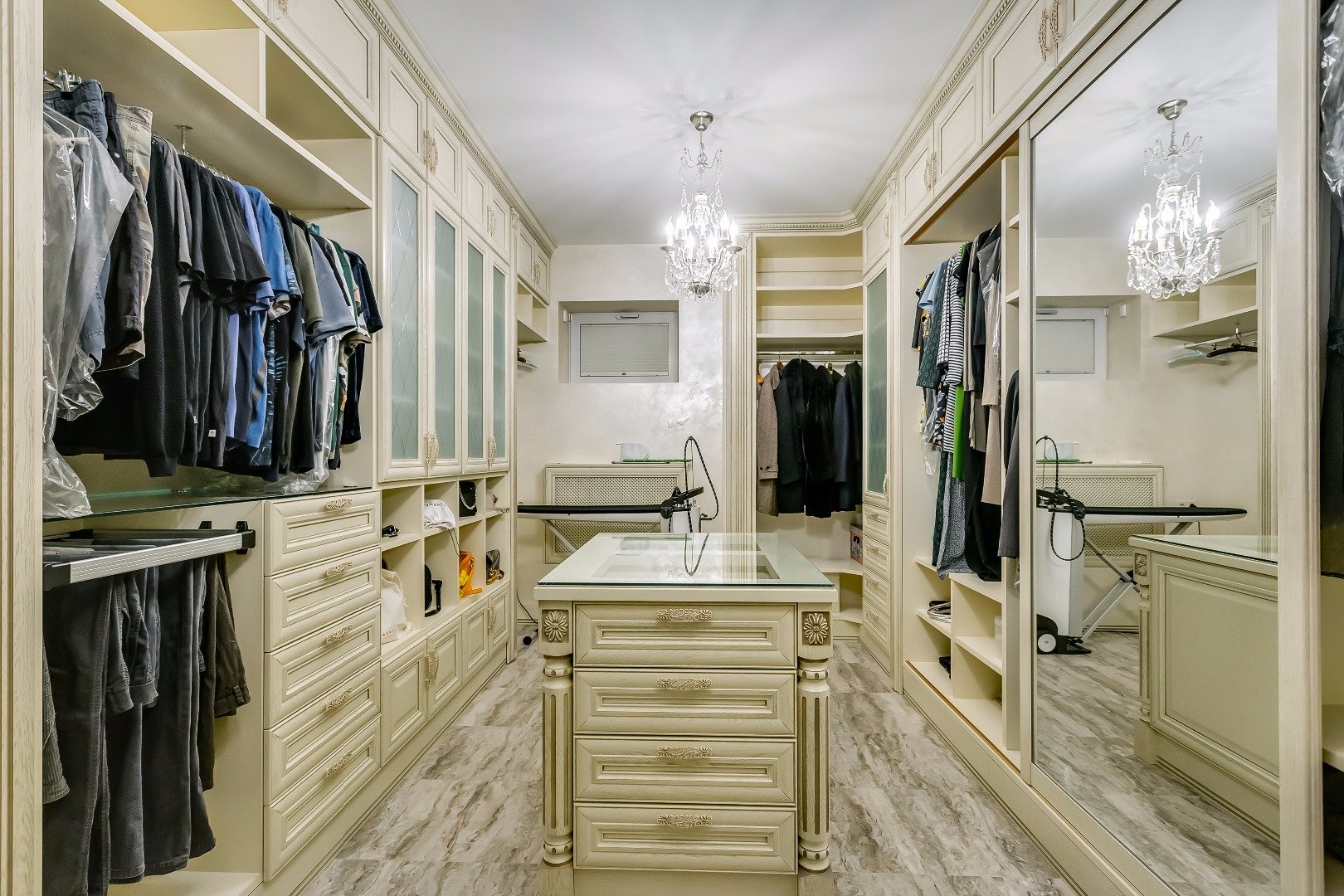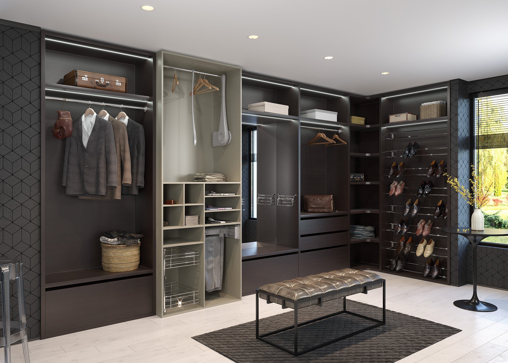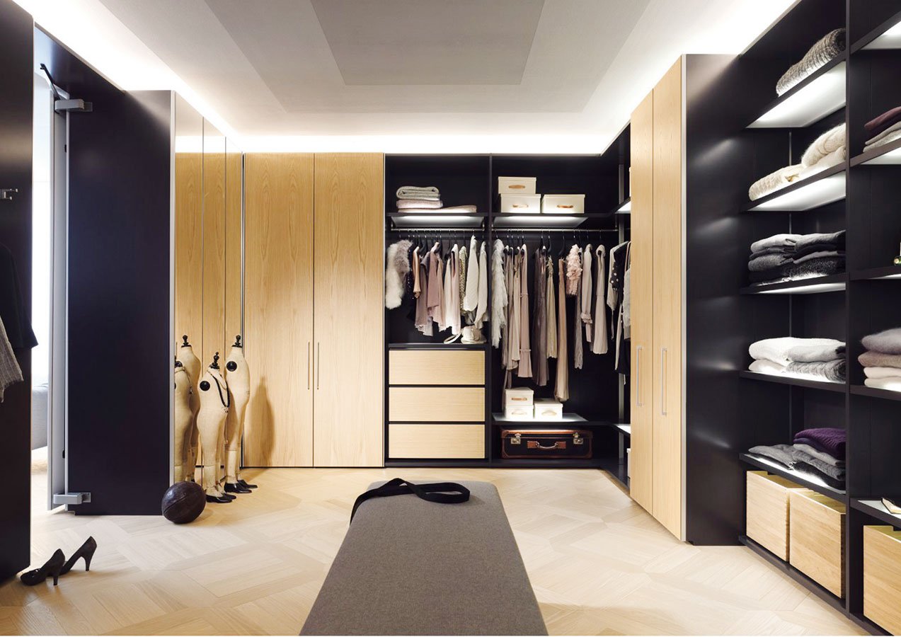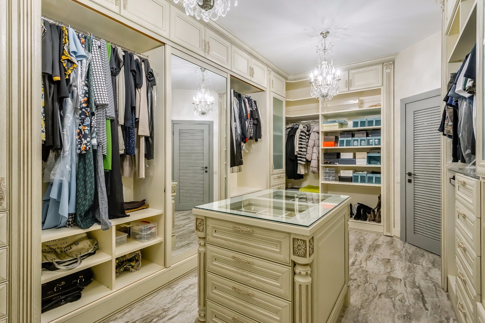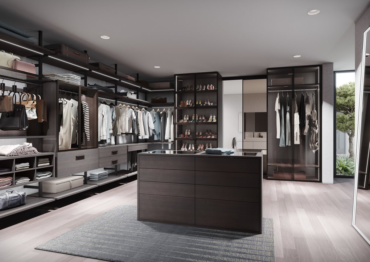 Hay muchas versiones de vidrio para espejos de productos para el vestidor, complementadas con automatización y control de acceso. Las prácticas particiones de vidrio decoran efectivamente el interior. Estos pueden ser productos estándar o creados de acuerdo con parámetros individuales.
