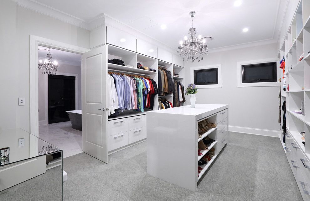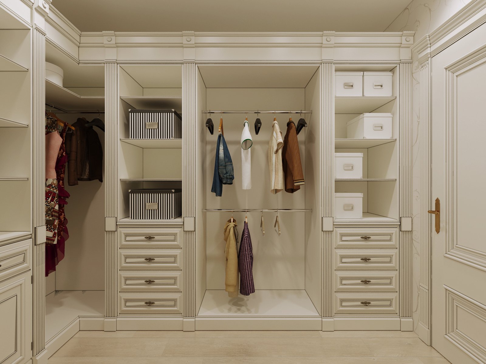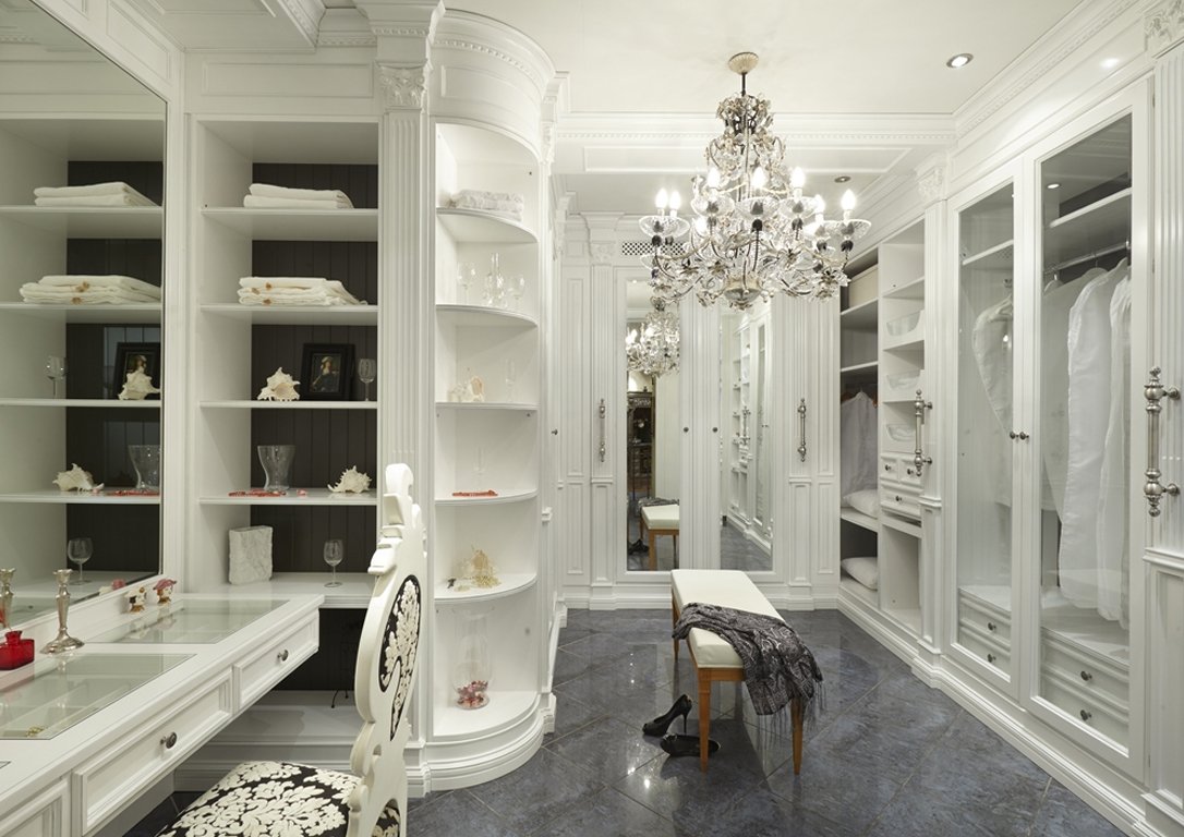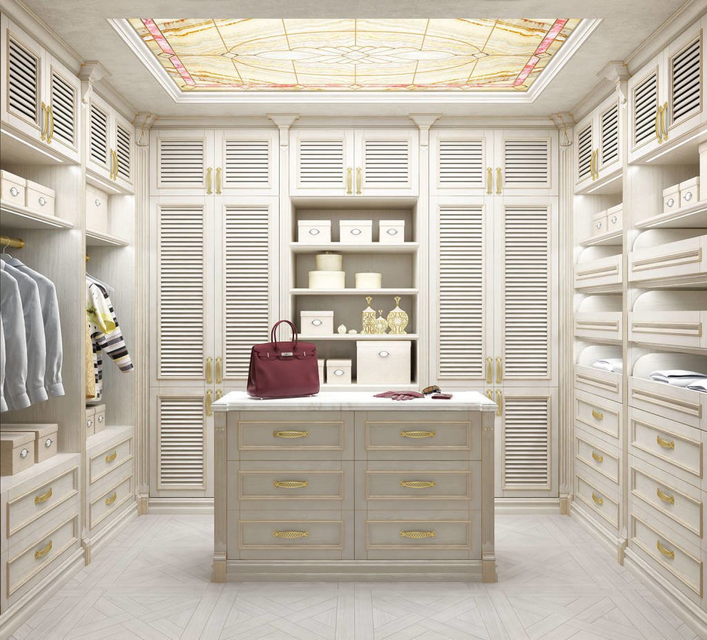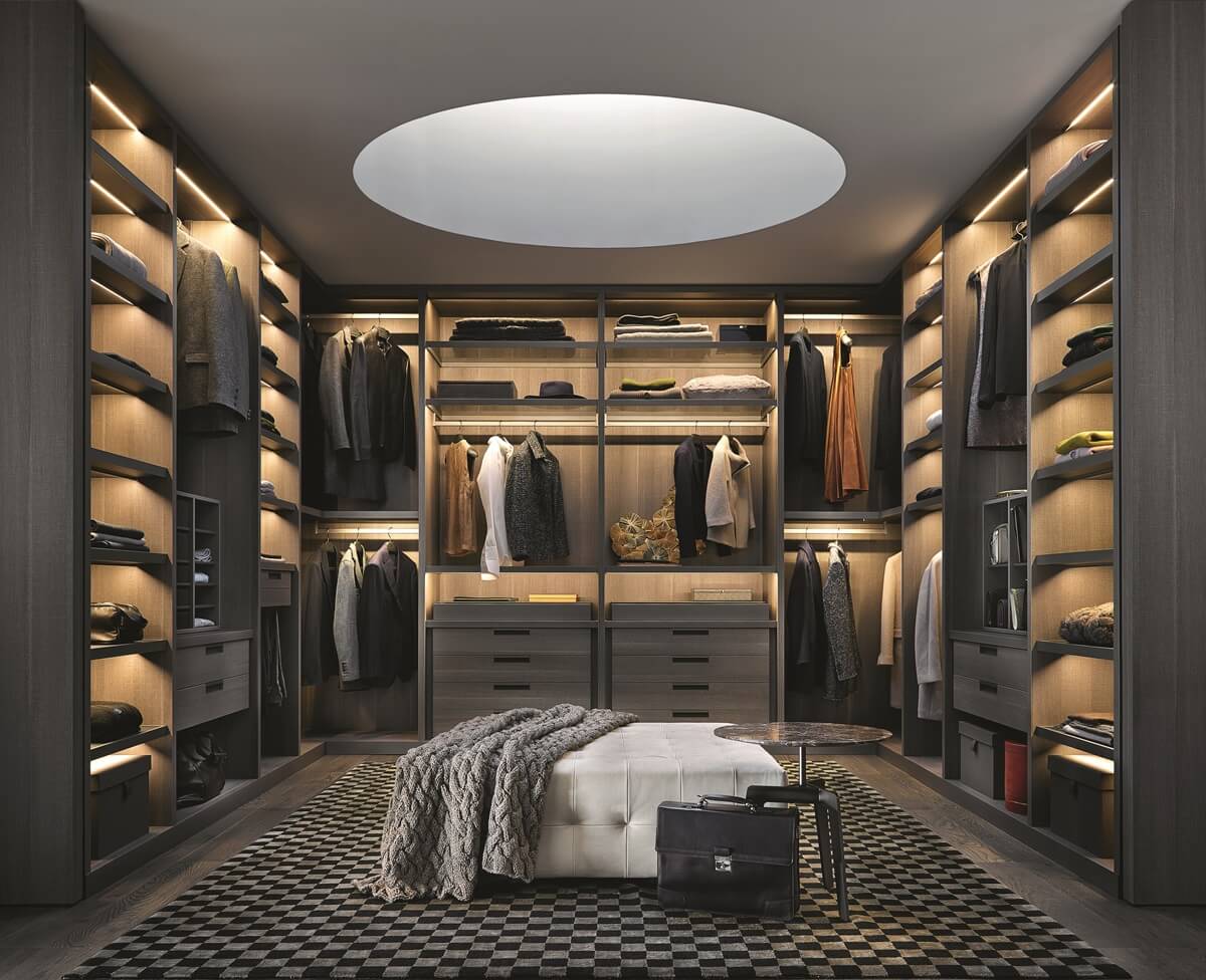 Hay muchas versiones de vidrio para espejos de productos para el vestidor, complementadas con automatización y control de acceso. Las prácticas particiones de vidrio decoran efectivamente el interior. Estos pueden ser productos estándar o creados de acuerdo con parámetros individuales.