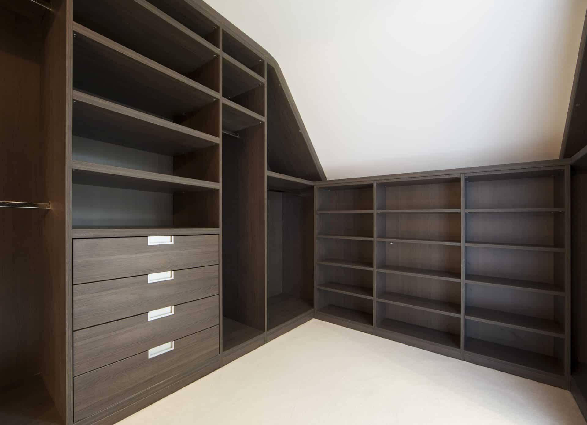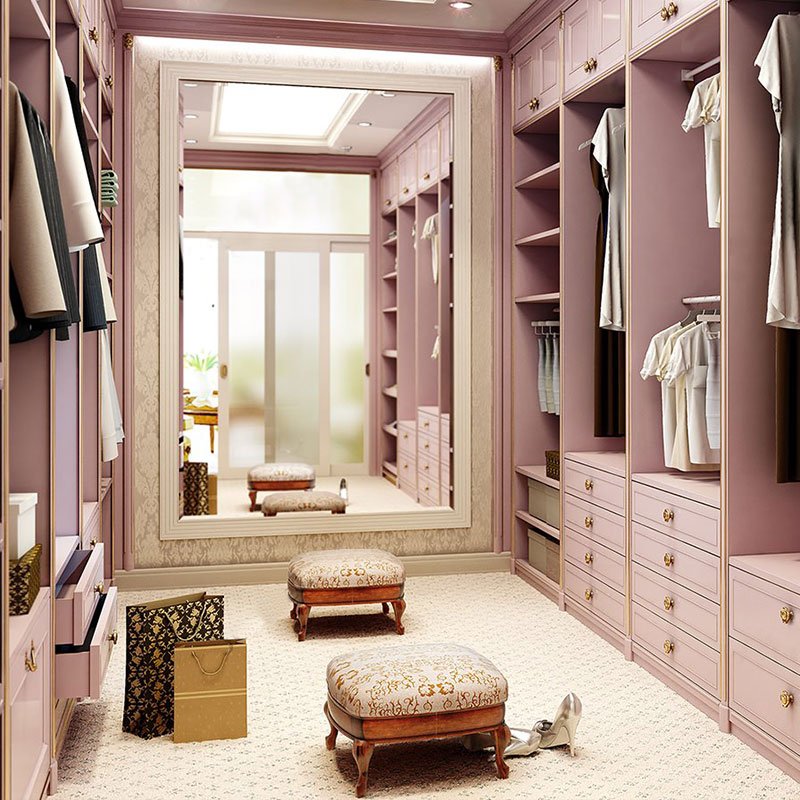 Todos los detalles para organizar el almacenamiento en el vestidor son muebles.Para la fabricación de productos de diseño inusual, se necesitan materiales especiales. Las construcciones de varios tipos están hechas de pinturas adecuadas para su propósito. Al elegir cualquiera de las opciones, debe recordar que el vestidor es una habitación cerrada sin ventanas y con poca ventilación, por lo que debe tener en cuenta la posibilidad de mantener un nivel aceptable de humedad. Una vez que se determina la ubicación y el tipo de sistema de almacenamiento, puede proceder a la selección de materiales de acuerdo con las características de diseño.
