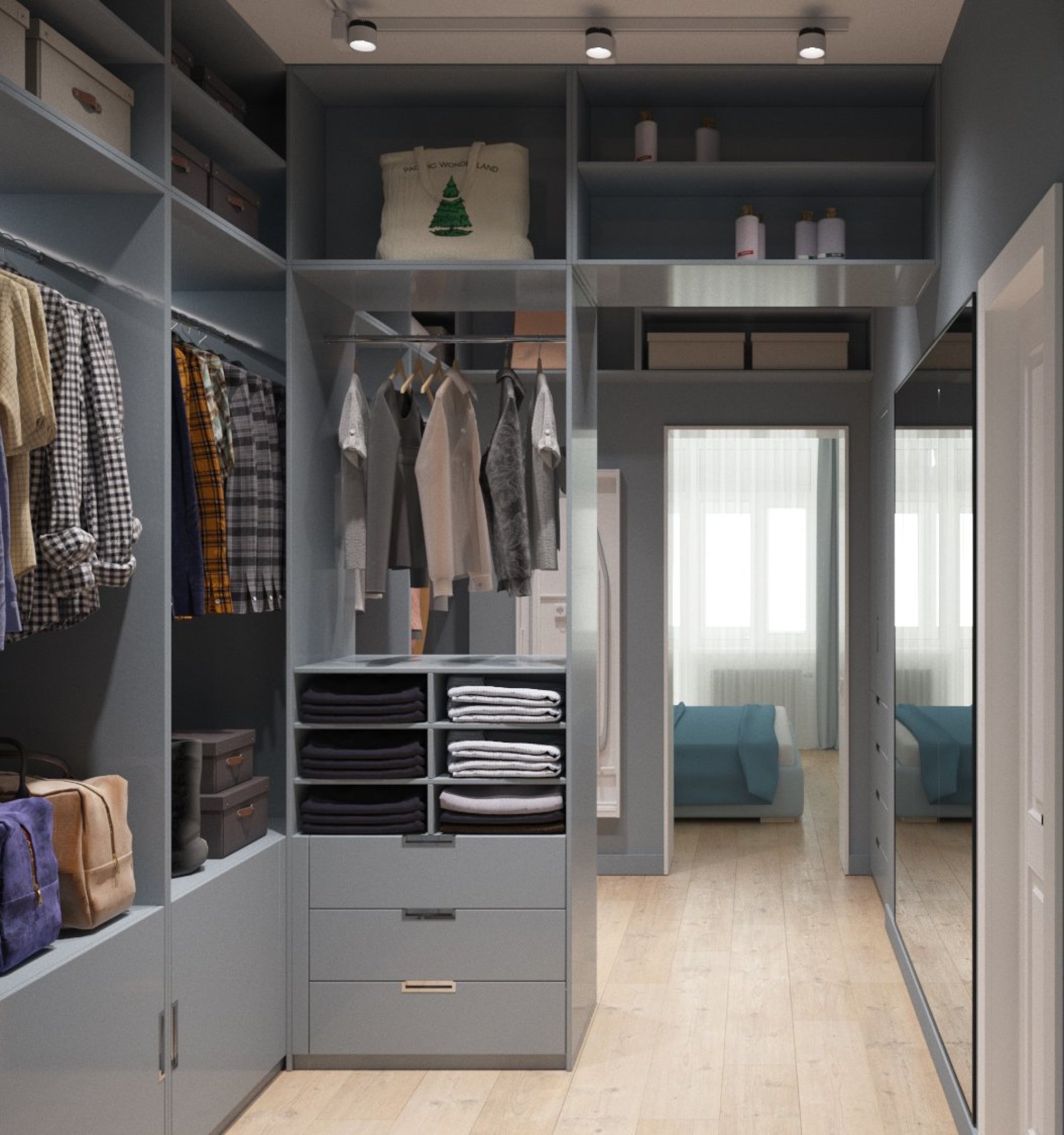 En una habitación práctica para ropa y zapatos, cada rincón debe usarse racionalmente. En primer lugar, debe determinar la cantidad de ropa y otros artículos que estarán en el vestuario para el almacenamiento permanente. Esto le permitirá elegir correctamente el tipo de diseño del sistema de almacenamiento, completarlo con elementos modulares, montados y de malla.