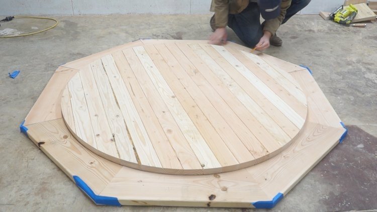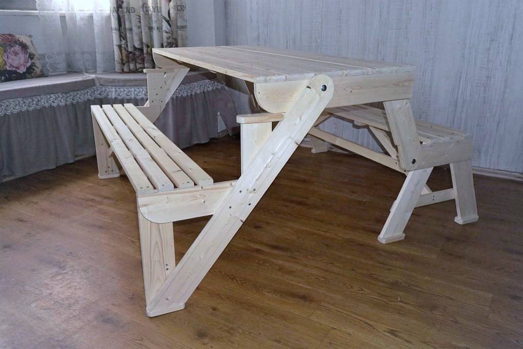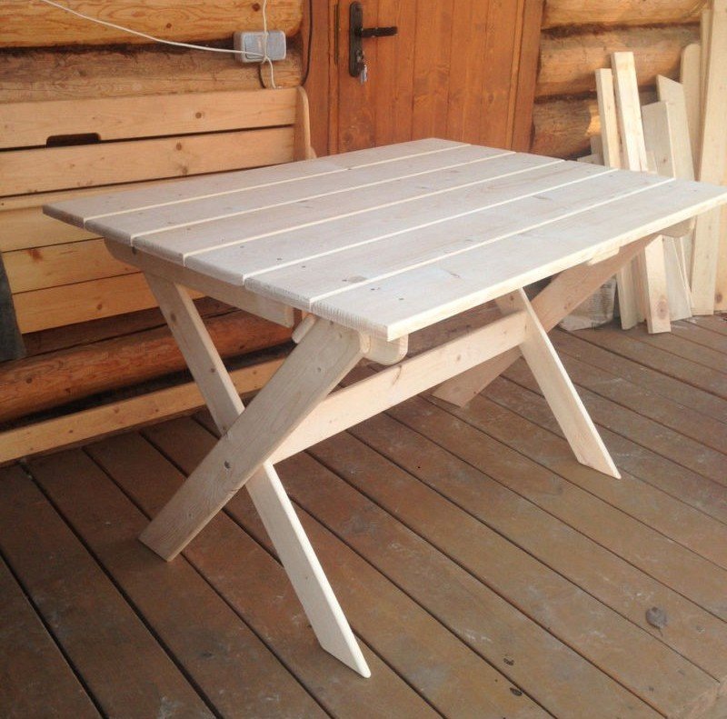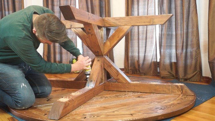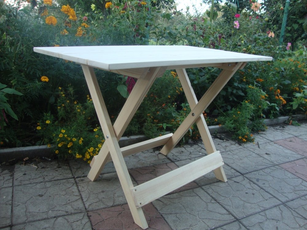El primer paso es determinar el tamaño de las encimeras, tal vez una versión redonda del diámetro deseado esté a la venta. La configuración de la mesa plegable consistirá en dos o muchos sectores, pero hay una variedad adicional: patas plegables. Los soportes en sí mismos generalmente se obtienen de madera. La parte superior de la mesa debido a ellos podrá bajar o subir. En el curso del trabajo, la medición diagonal se realiza cuando la mesa está a la altura especificada. Las patas de los lados terminan donde comienzan los soportes del otro. Los soportes emparejados están conectados por una barra o una placa. Como resultado, se forman pares cruciformes. El montaje se organiza a media altura.