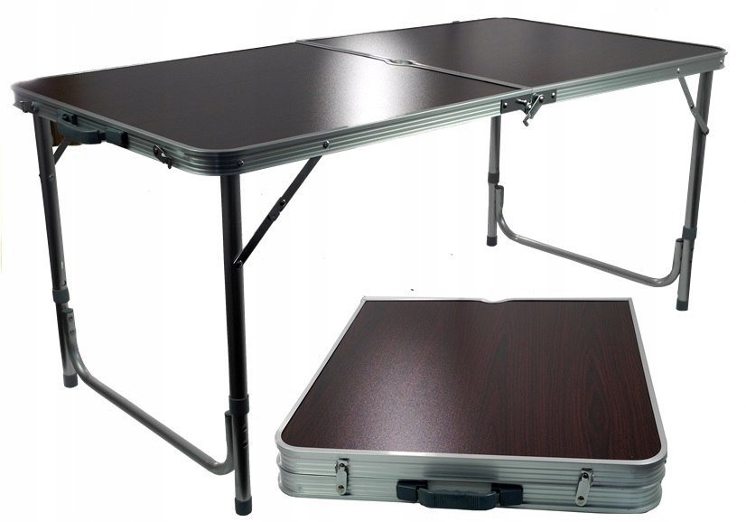 En primer lugar, se obtienen dos mitades de la encimera de las hojas de aglomerado. A continuación, corte una viga larga: en segmentos a lo largo de la longitud calculada. Las barras están conectadas a las mitades de la mesa desde todos los lados.Ambas partes de la encimera se unen entre sí con bucles. Para las piernas necesitarás 4 barras más. En los soportes obtenidos, así como en el marco, se taladran agujeros, de acuerdo con la muesca para la conexión libre del marco y los soportes. Estos últimos se ensamblan con pernos de muebles y tuercas de mariposa. Luego viene el giro del mango. Se realizan dos pestillos en la maleta para que no se abra al moverla. Hay recomendaciones adicionales con respecto a la calidad de construcción. Incluso antes de realizar la parte principal del trabajo, debe dibujar un diagrama en varios ángulos, calcular los tamaños y la cantidad de elementos. El diseño es fácil de montar, pero tiene una estructura compleja. Debe ser estudiado preliminarmente.