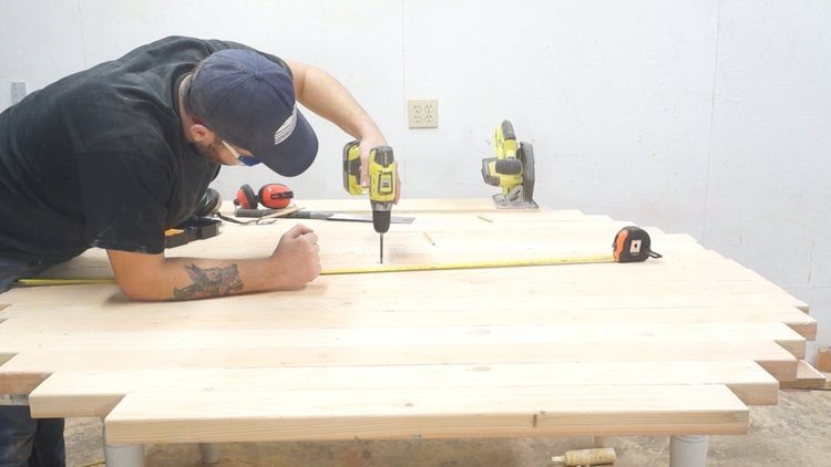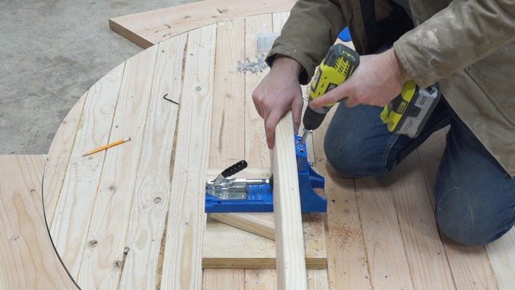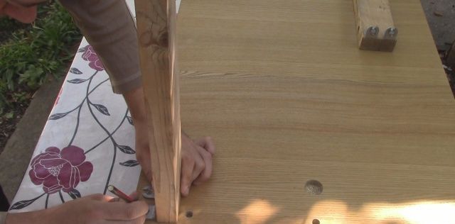 Con una encimera, las patas se sujetan con tornillos y pegamento. Si la superficie de la mesa consta de 2 partes, entonces con los soportes se conectan a 2/3 de la longitud de esta última. Para esto, también se utilizan otras 4 piezas de madera.
