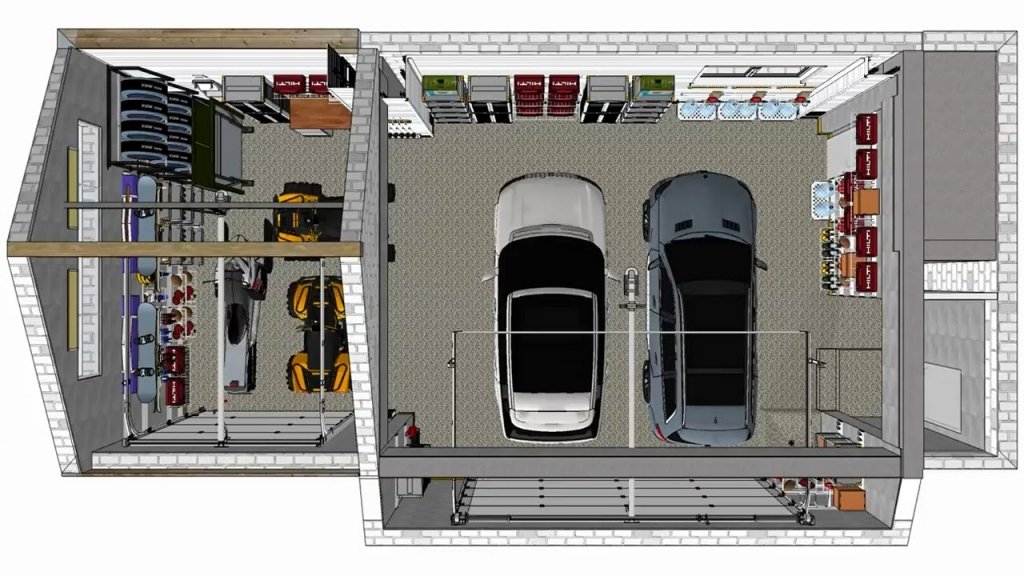 La disposición del garaje incluye componentes tales como la selección y preparación de materiales, análisis estructural y preparación de herramientas para el montaje, diseño e instalación.Si se planea la implementación del sistema de estanterías, se crea necesariamente una lista preliminar de artículos que se almacenarán en él. Se llama la atención sobre sus dimensiones y peso. Es necesario dibujar un plano del espacio del garaje e indicar con la máxima precisión en él la altura, profundidad y anchura, número y escalones de los estantes. Luego se determina con el método de montaje y fijación. La elección del tipo de estructura, su instalación y elementos de fijación depende del material de las paredes. Si son de metal, será extremadamente difícil hacer estantes con bisagras. Paredes de ladrillo con una capa de yeso: una opción universal. Los materiales para el sistema en sí se seleccionan de acuerdo con los criterios de practicidad, confiabilidad y conveniencia.