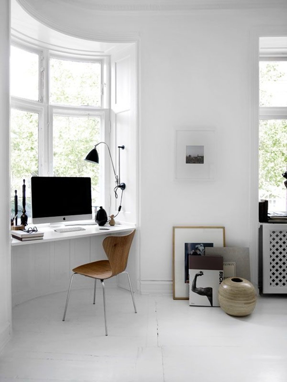 Una mesa en el alféizar de la ventana ahorrará energía. Si trabaja durante el día, no se requieren lámparas de mesa, ya que serán reemplazadas por la luz solar.