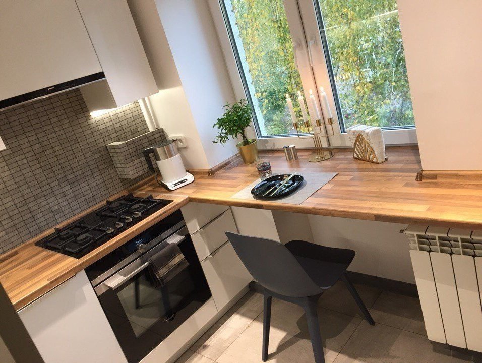 Una mesa en el alféizar de la ventana es ideal para apartamentos y estudios estrechos, como reemplazo de muebles multifuncionales. En las viviendas, donde cada metro cuadrado vale su peso en oro, dicha solución se ajustará orgánicamente a los estilos de alta tecnología, minimalismo y loft.
