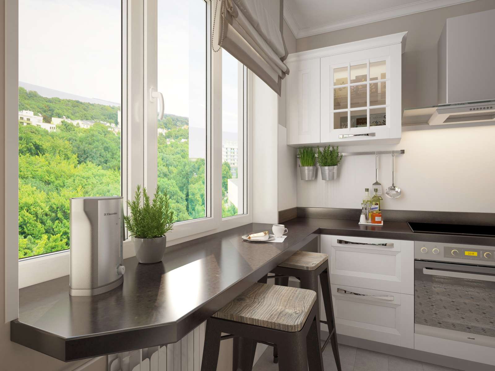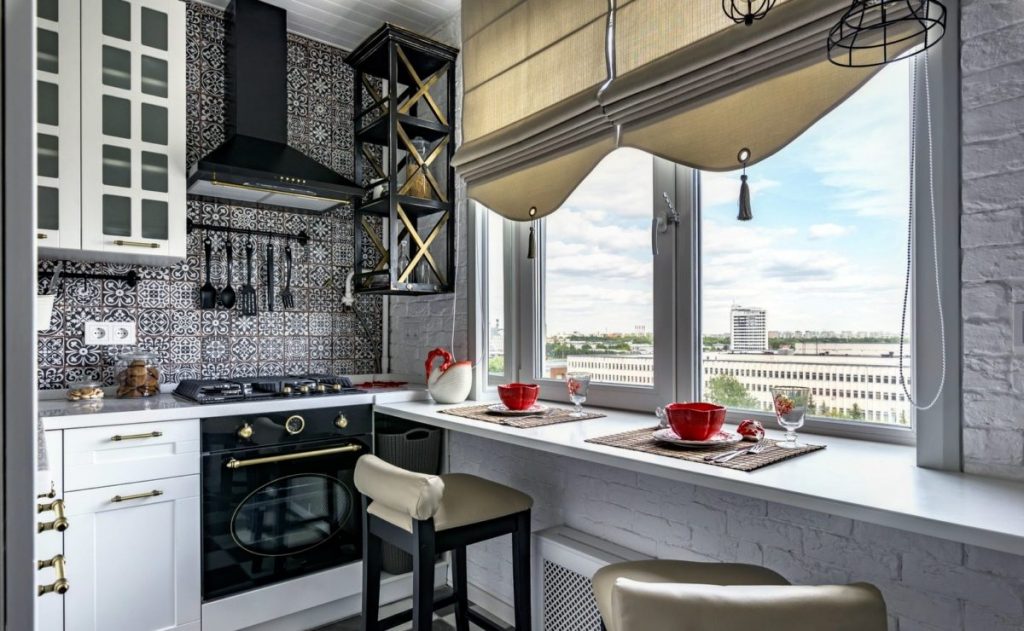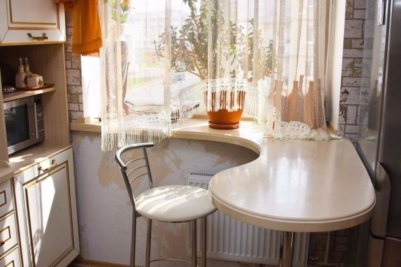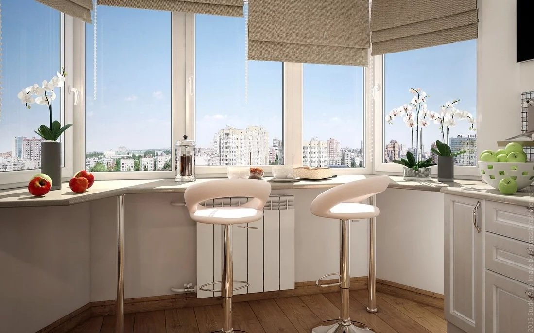 No puede limitarse a la mesa. Los alféizares de las ventanas a menudo se convierten en mostradores de barra cuando se combina una logia, un balcón con una cocina o sala de estar.
