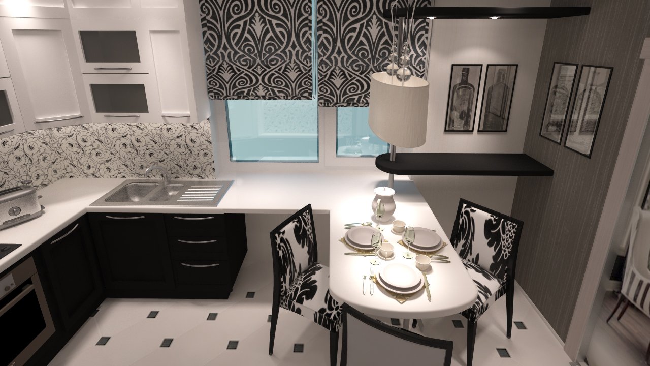 Un alféizar de mesa de comedor: una opción que se ha vuelto popular en los últimos años. Para nosotros, tal decisión puede parecer inusual e incómoda, porque los comensales se sientan en una fila, como en un bar o en un café exprés.Quizás esta solución realmente carece de notas de comodidad en la comida familiar en el hogar, pero es ideal para apartamentos de solteros y aquellas parejas que prefieren no mezclar conversaciones y comidas. Tal área de comedor en miniatura y compacta se puede colocar en la cocina, en la sala de estar o incluso en el balcón o la logia, si están debidamente aislados. La principal ventaja del alféizar de la ventana convertida en este caso es el ahorro de espacio. Las sillas plegables, que recuerdan a las contrapartes del jardín, que se pueden quitar debajo de la mesa o esconderse en un nicho especial si el área del comedor no se usa actualmente, se seleccionan como un conjunto para la encimera.