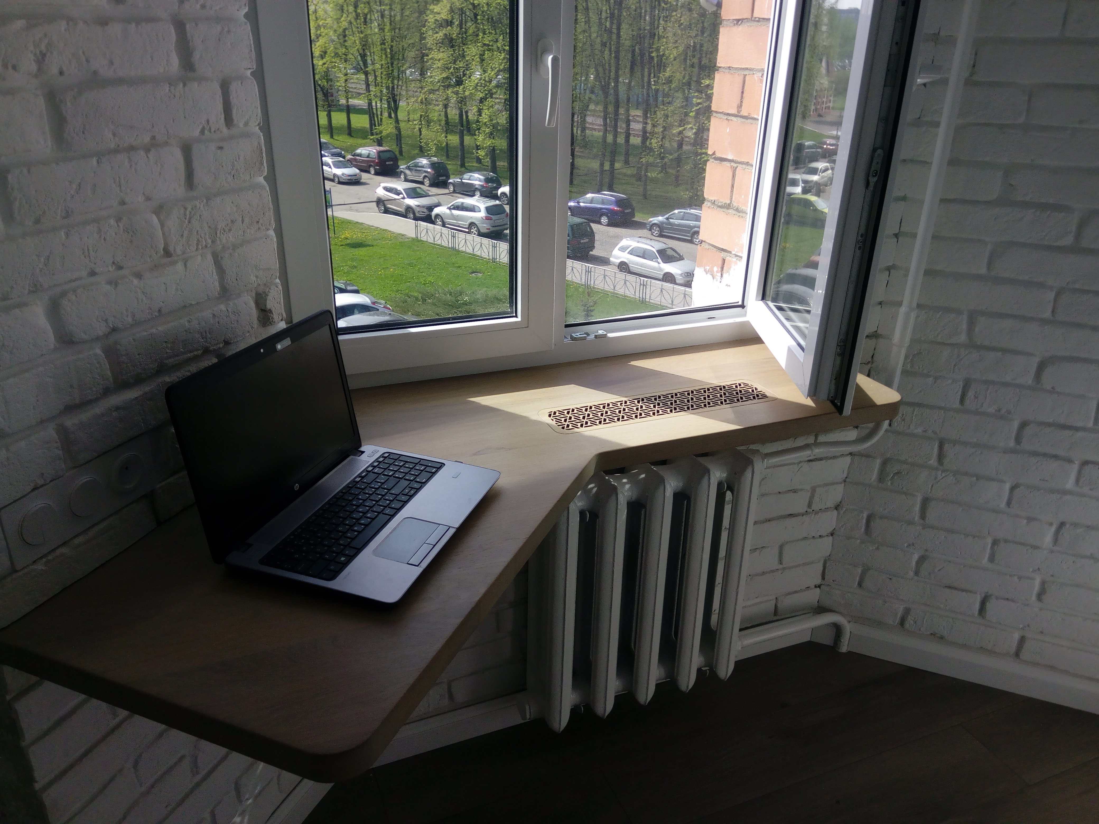 Alféizar de la ventana de mesa: disposición del lugar de trabajo