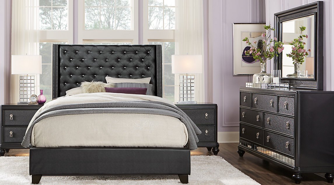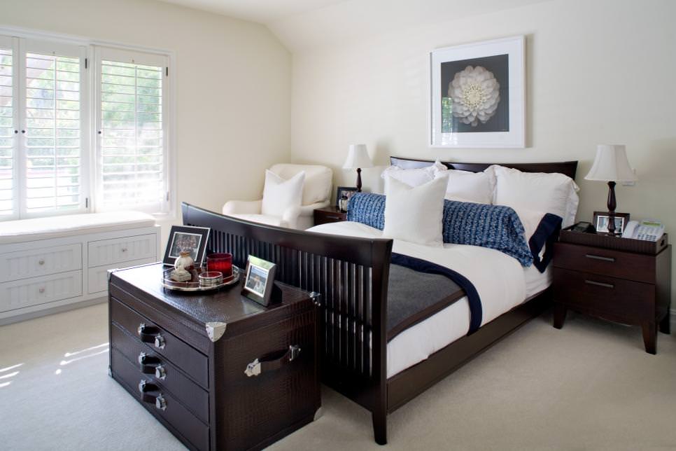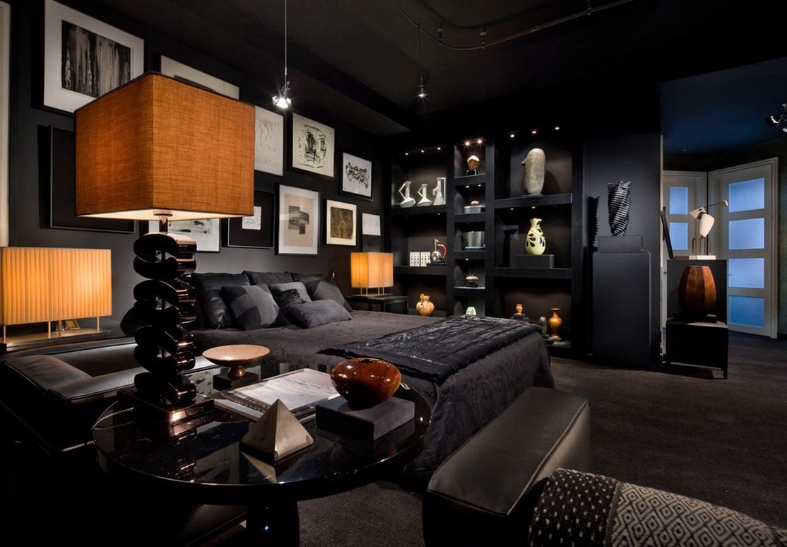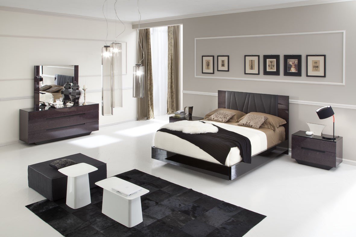 No se deje llevar por los colores oscuros a los propietarios de habitaciones pequeñas, cuanto más pequeño sea, menos muebles oscuros puede colocar. Una habitación de un tamaño impresionante se puede dividir efectivamente en zonas que usan colores de muebles de asfalto negro. Una cama oscura puede ser un elemento clave en el diseño, un tejido ligero y muchas almohadas enfatizarán su elegancia. Una colcha brillante contrastante con las mismas almohadas agregará alegría. Si prefiere una atmósfera misteriosa e íntima, los muebles oscuros se complementan mejor con espejos en un marco masivo, candelabros, marcos de fotos elaborados. El glamoroso interior de la habitación requiere la dilución de muebles negros brillantes con abundante luz de una lámpara de araña de cristal, elementos decorativos plateados y pedrería.