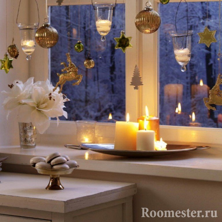 Además de los dibujos en vidrios, una nueva tendencia fue el diseño de alféizares con recortes de papel. Los elementos en forma de casas, torres (varios temas) se cortan del lienzo de papel. Las casas están expuestas en el alféizar de la ventana en dos o tres filas a lo largo de toda la longitud, entre ellas en la base hay una guirnalda ligera.Entonces la "ciudad" se resaltará en la oscuridad.