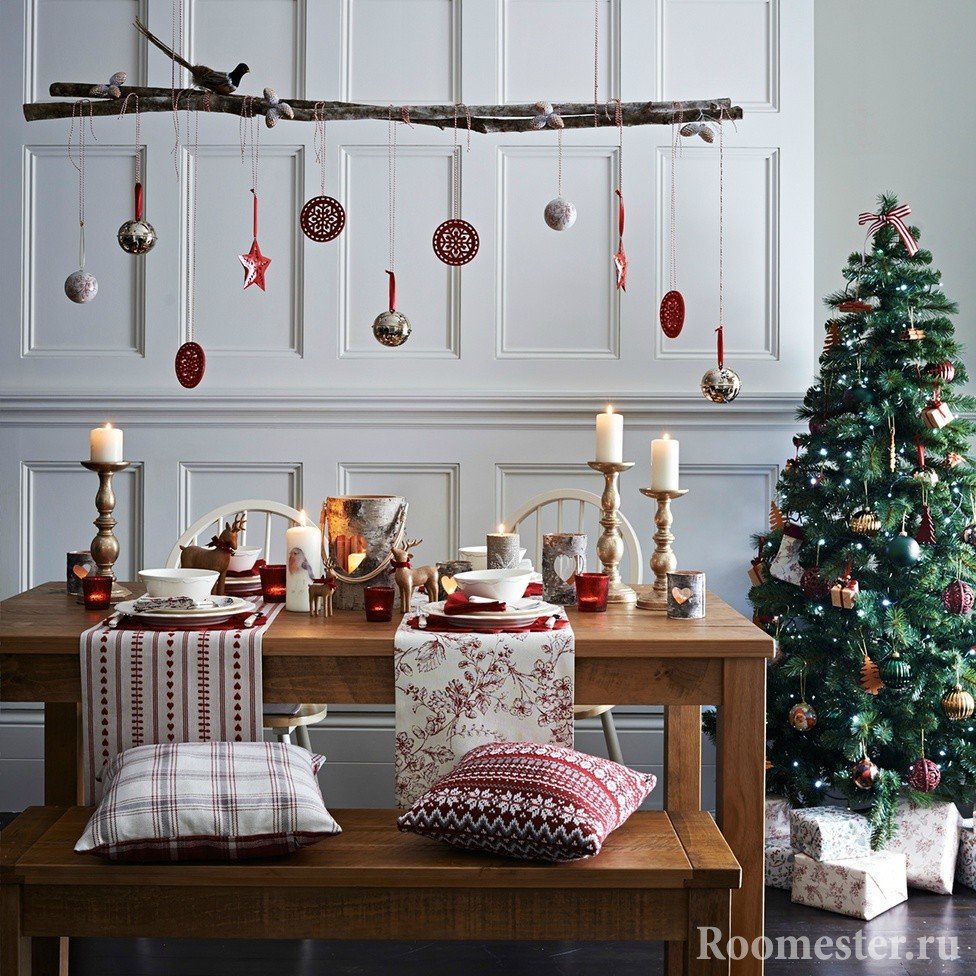 Es necesario tener en cuenta no solo el interior, sino también el tamaño de la habitación decorada. Las habitaciones pequeñas no deben verse obligadas a decorar objetos, ya que interferirán con las actividades familiares.Unos pocos acentos notables serán suficientes (por ejemplo, un árbol de Navidad, una corona de Navidad, composición). "Spray" en tal caso no es necesario. Pequeños detalles robarán espacio, esto no conducirá a una decoración navideña de alta calidad.
