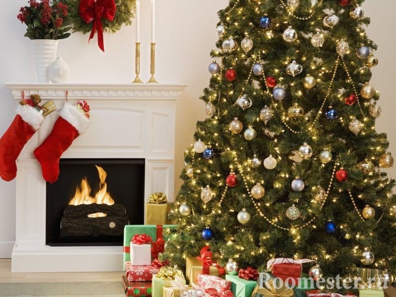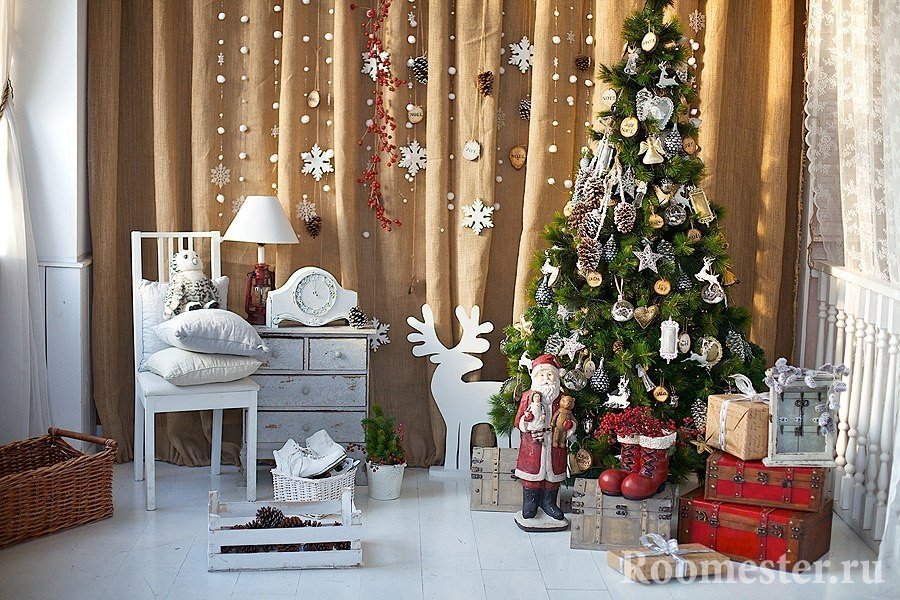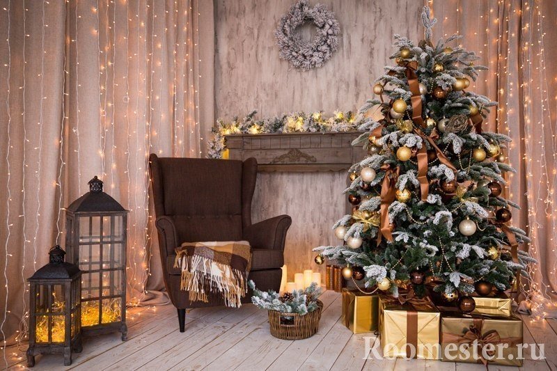 Conozca siempre la medida en la decoración. No abuse de la decoración, organice la habitación de manera uniforme para no concentrarse en un solo lugar. Por ejemplo, una guirnalda, una corona con un árbol de Navidad en una esquina se verá chur.