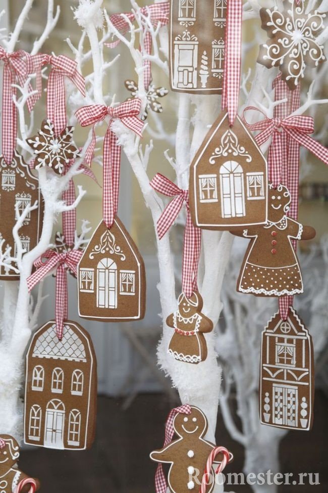 Las composiciones colgantes de bolas, dulces, frutas secas se pueden fijar en las paredes, muebles, ventanas.