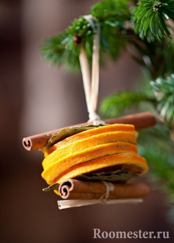 Si decide hacer toda la decoración para el Año Nuevo con sus propias manos, no se olvide de la combinación armoniosa de elementos. Por ejemplo, las naranjas secas en un árbol de Navidad se combinan incorrectamente con dulces en paquetes brillantes. Es apropiado combinar naranjas con juguetes hechos de beige y marrón de textil o fieltro.