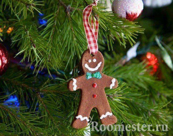 Puedes hacer tal decoración para el Año Nuevo tú mismo. La base es una trenza o cinta, una cuerda de lino. Puede adjuntar cualquier elemento: frutas secas, dulces, materiales naturales. Es mejor usar pegamento caliente. Después del trabajo, el producto está cubierto de destellos u otros elementos decorativos.