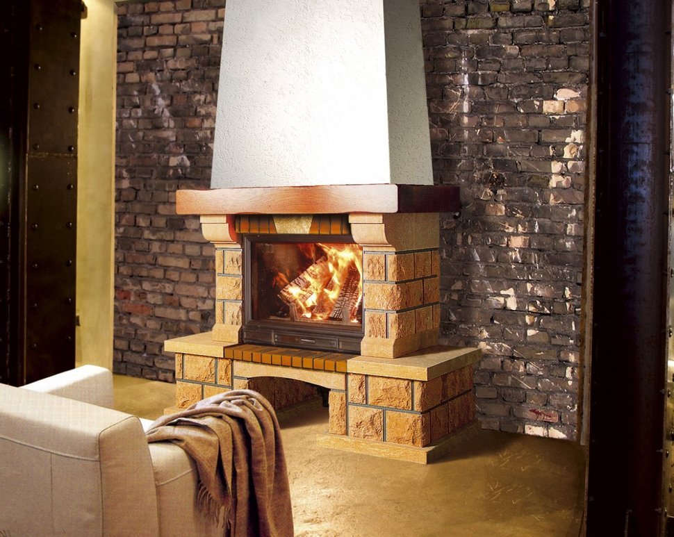Uno de los requisitos más importantes para la decoración de esta chimenea es la resistencia al fuego del material de revestimiento. El diseño consiste en un hogar (el lugar donde arde el fuego) y un portal (exterior decorativo) con una chimenea. El artículo generalmente está hecho de clinker, un ladrillo de estufa resistente al calor especial.