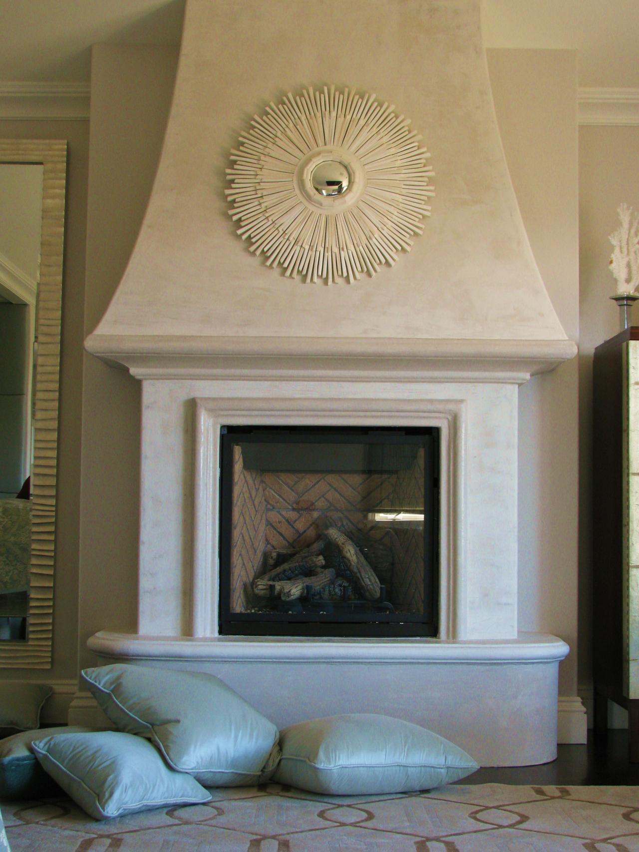 Acabar el hogar con estuco no es un proceso complicado o costoso. Adecuado para estructuras hechas enteramente de ladrillo, hormigón. Este diseño no carga el objeto, por lo tanto, no es necesario fortalecer la base adicionalmente. La capa de yeso destinada para el posterior acabado es ligeramente diferente de la versión decorativa.Al cambiar el interior, la estructura se vuelve a pintar fácilmente en un color diferente, correspondiente al color del entorno. La desventaja de este acabado es que cuando se aplica una capa gruesa, se requiere refuerzo, así como un secado prolongado.