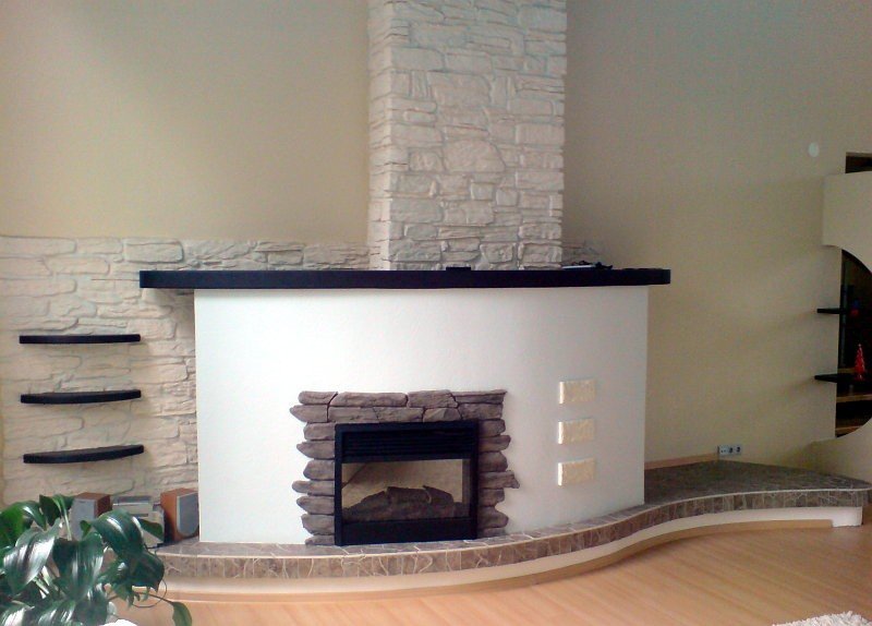 La piedra artificial está hecha de yeso, materiales sintéticos, la mayoría de las veces con la adición de astillas de piedra. Sus tipos individuales son externamente indistinguibles del presente. El diseño de alta calidad se obtiene con la elección correcta de materiales.