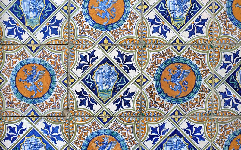 mayólica: se ha usado desde la antigüedad, en composición es una terracota mejorada, con un patrón aplicado, cubierta con un esmalte transparente. El precio del material es alto,