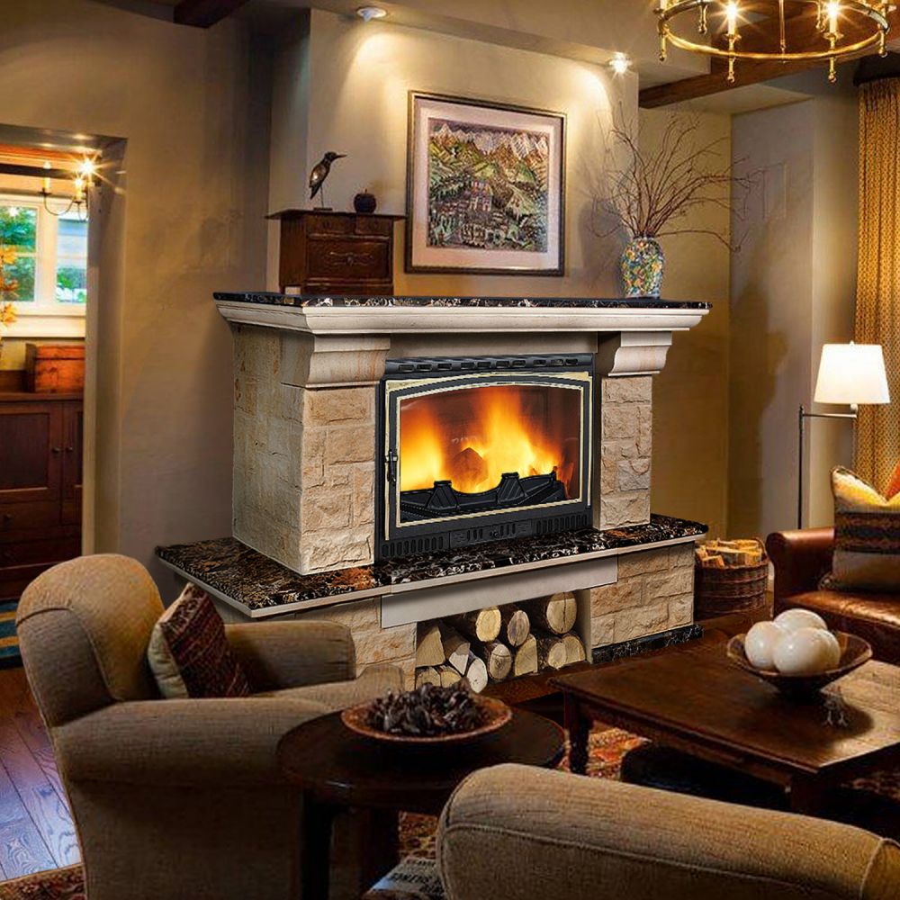 Hay varias opciones para terminar el portal, cada una de ellas tiene sus propiedades positivas y negativas. Muy a menudo, el hogar está enlucido con tinción posterior, forrado con baldosas cerámicas decorativas, piedra natural o artificial, revestidas con láminas de metal. El portal en sí a menudo está decorado con puertas de vidrio refractario, rejas pesadas de hierro fundido, amortiguadores de acero.