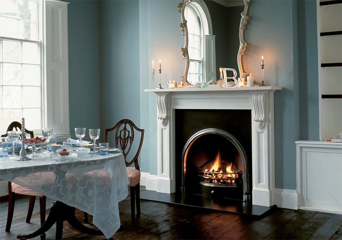 Cuanto más cerca está la habitación, más pequeña se vuelve la chimenea decorativa, más luminosa está terminada.
