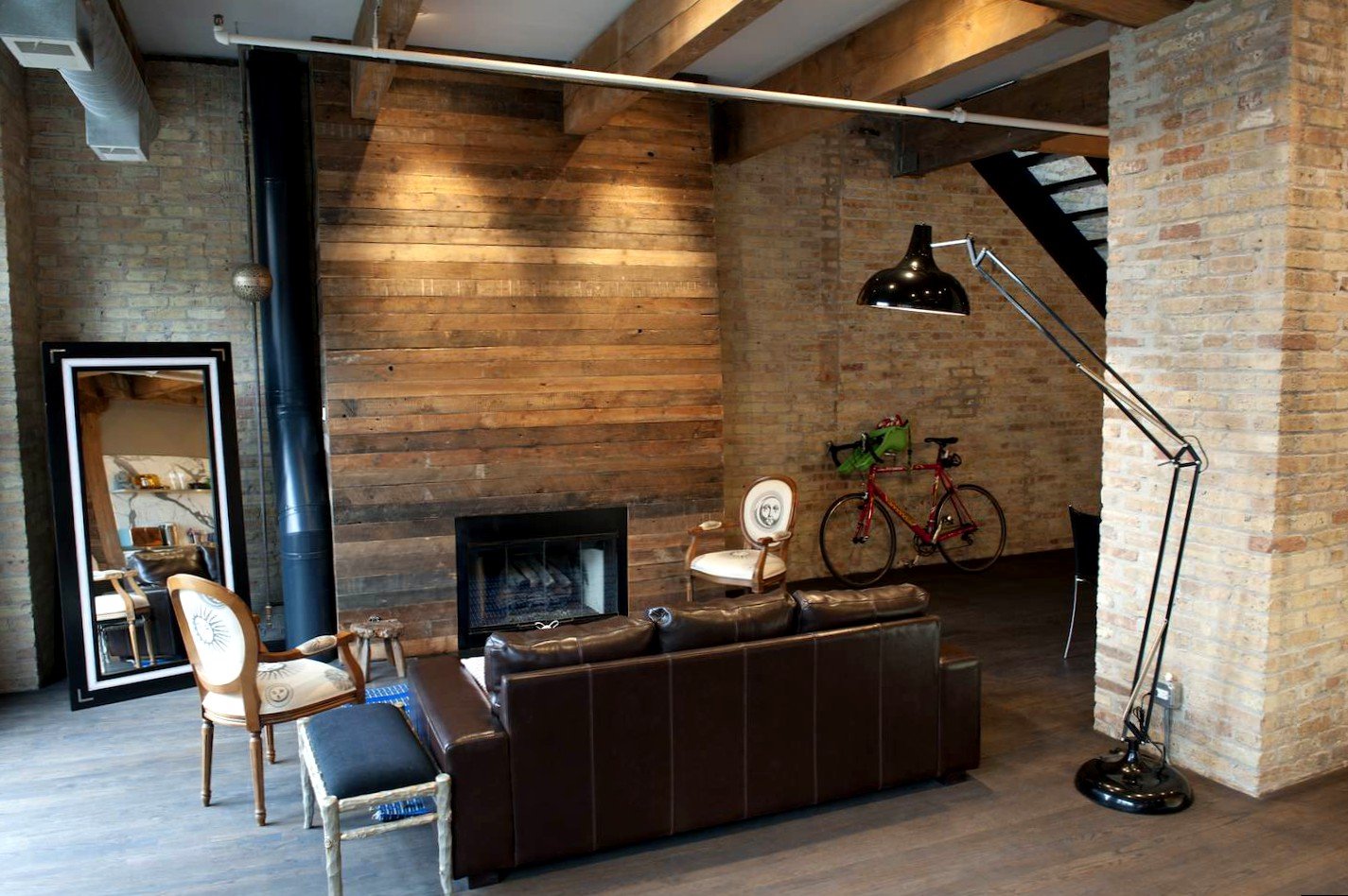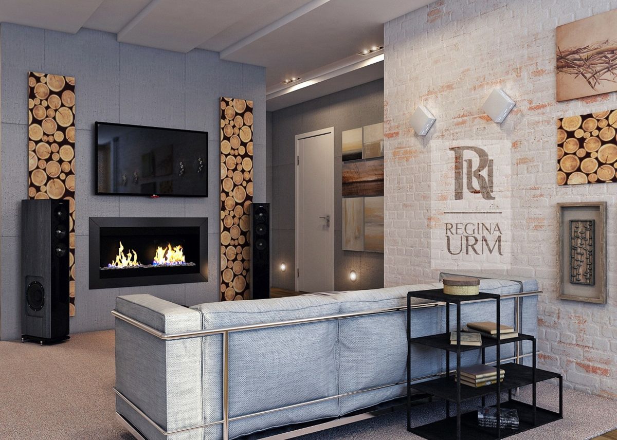 El hogar tipo loft siempre está hecho de "antigüedad", terminado con ladrillo, piedra, metal oscuro, madera en bruto, con menos frecuencia: yeso, estuco. La estructura generalmente se coloca cerca de la pared, pero la isla, las opciones suspendidas son aceptables, la forma es rectangular, redonda, en forma de barril, etc. La chimenea aquí no está enmascarada, sino que está acentuada. Además, el hogar puede parecerse a una "estufa de barriga" ligeramente modernizada ubicada en un nicho vacío.