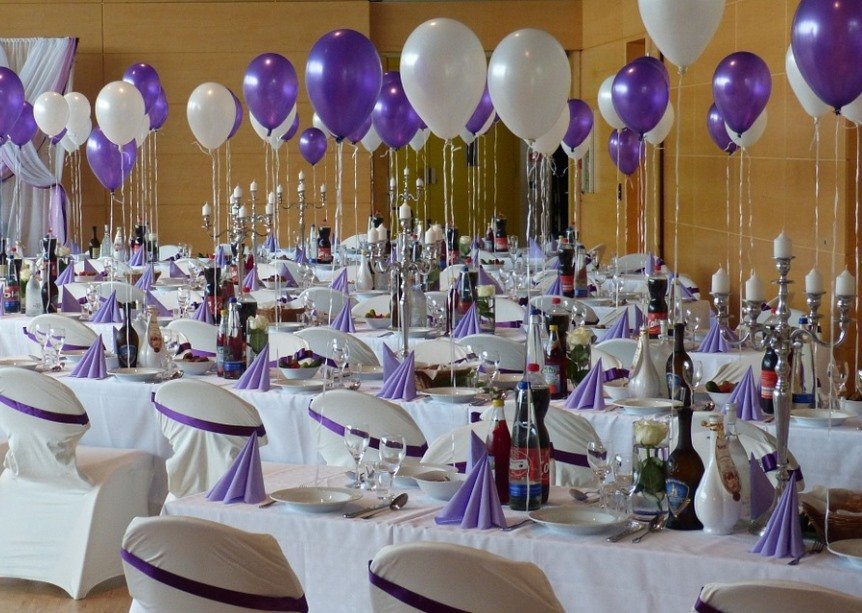 Hacer eventos con productos aéreos es todo un arte. Debido a la gran variedad de paletas, puede decorar bellamente un banquete, salón de actos, apartamento, casa, en el que se celebrarán varias celebraciones. Los diseñadores experimentados pueden crear una atmósfera romántica, jugando en tonos del mismo color.