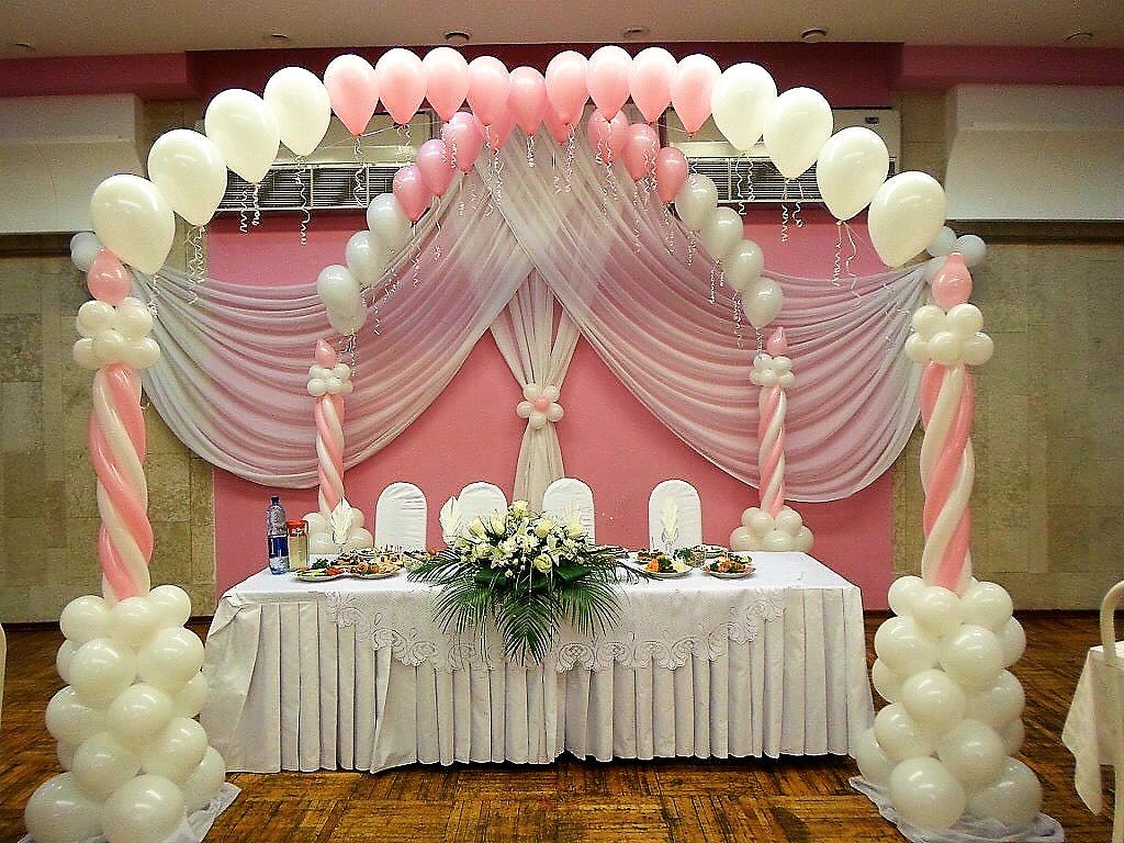 Los globos adornan la limusina del recién casado. Con la ayuda de modelos de color rosa y blanco, puede diseñar un arco para el registro. La zona de fotos está decorada de acuerdo con el tema de la boda.El rincón para una sesión de fotos capturará momentos importantes, se convertirá en un entretenimiento adicional para los invitados y enfatizará el estilo de la habitación. Al visitar lugares memorables, puede usar bolas auto soplantes.