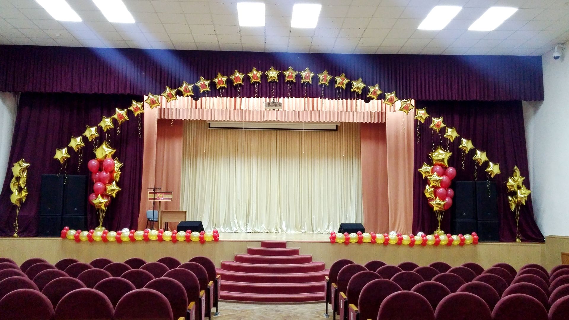 En el salón de actos, se llevan a cabo varios eventos: concursos, concursos, actuaciones de Año Nuevo, conciertos. Debajo de ellos destaca la sala más grande disponible para la institución educativa. Algunos tipos de reuniones no funcionarán sin decoración adicional, por ejemplo, la noche de graduación en el jardín de infantes, la última llamada a la escuela.