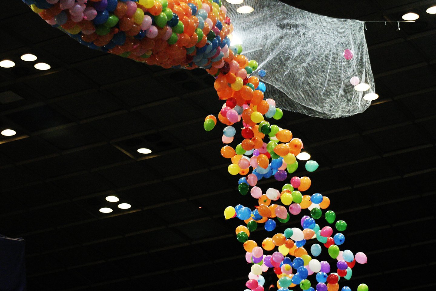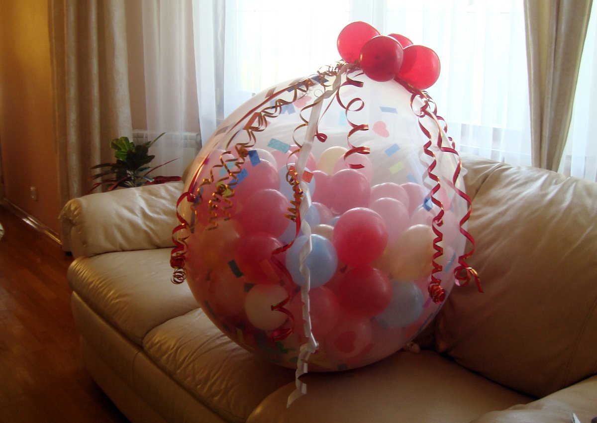 Esta decoración es adecuada para cualquier evento.Con su ayuda, puede crear un efecto sorpresa, por ejemplo, organizar bellamente las vacaciones de un niño, llenar la habitación con dulces en el momento adecuado. También puede ser útil en una fiesta corporativa, cena romántica, aniversario y otras celebraciones.
