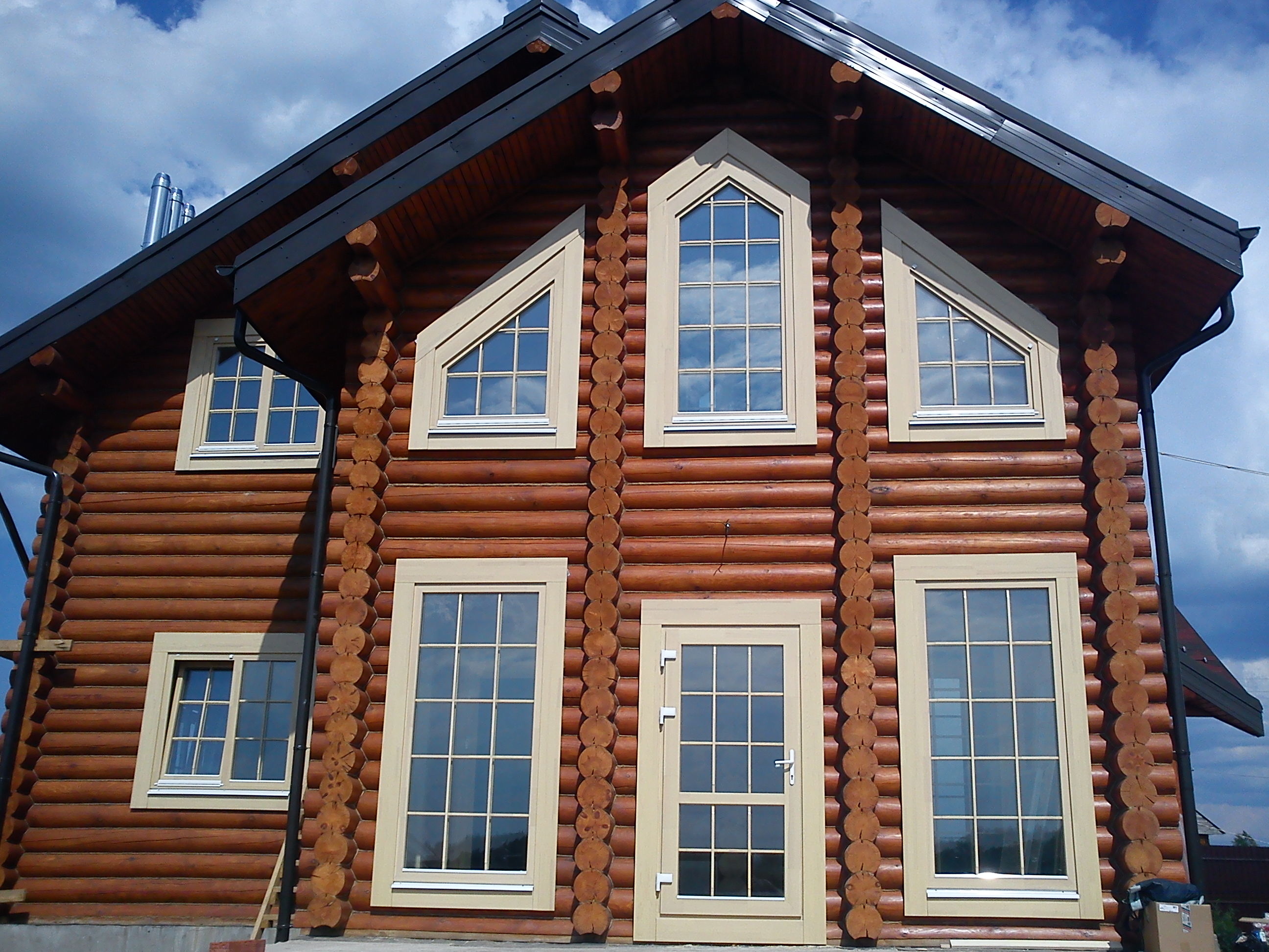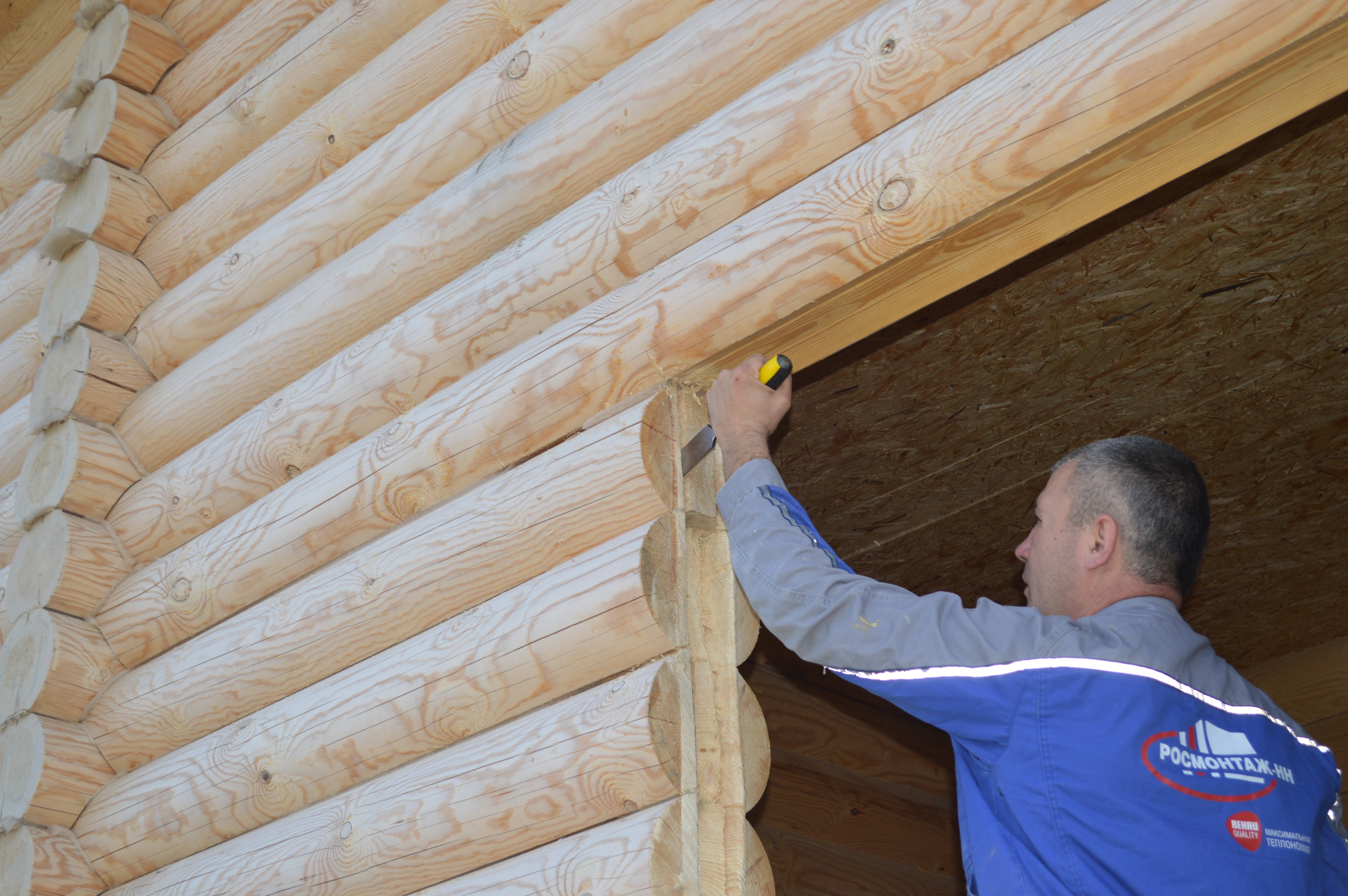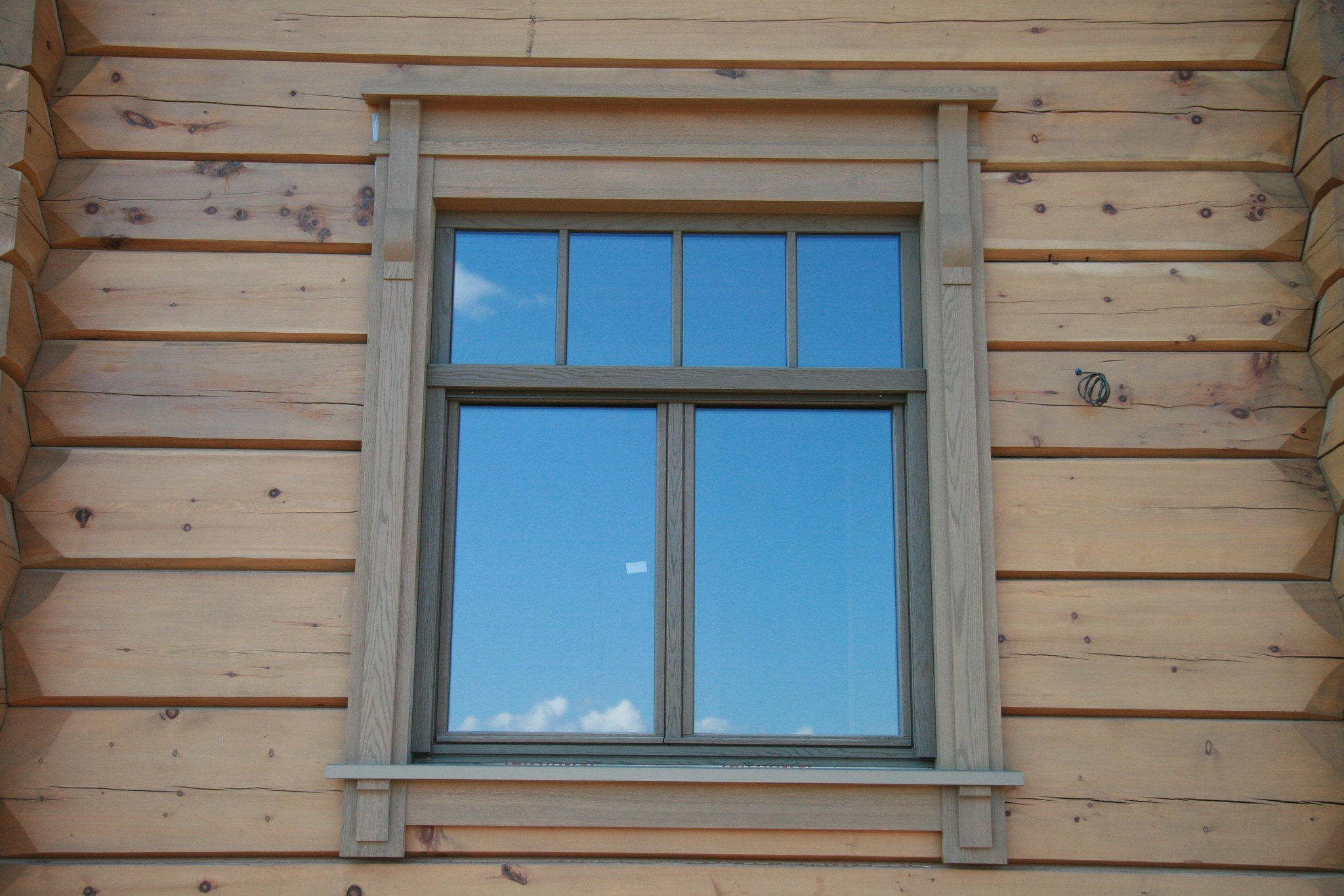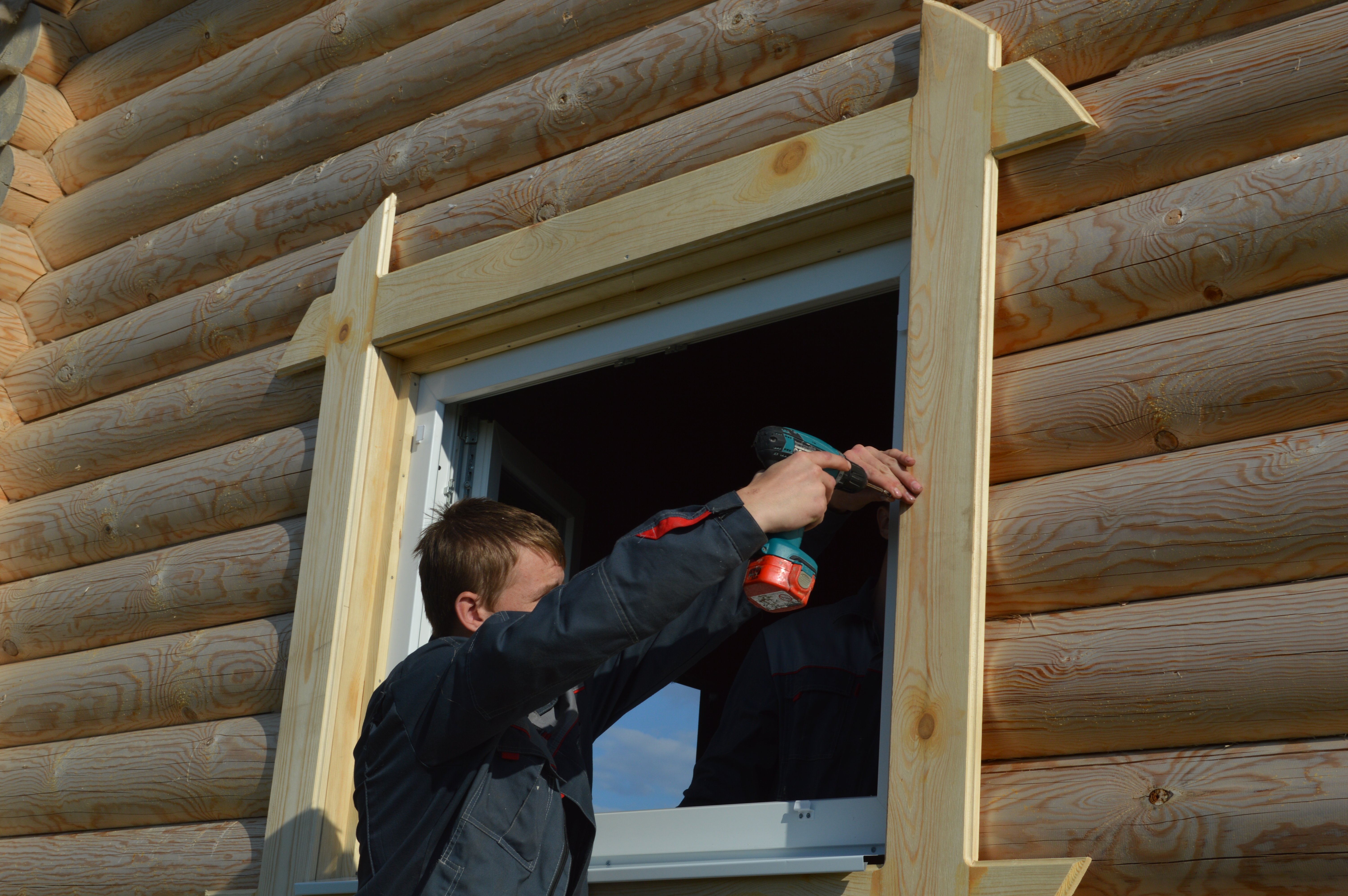 Inicialmente, los registros se cortan para obtener un área relativamente plana con huecos menores. Puedes alinearlos con masilla. El tamaño de las áreas eliminadas a lo largo del perímetro de la ventana debe ser igual al tamaño de las bandas de plataformas elegidas o literalmente 1-2 cm más grande (para marcos volumétricos y rizados).