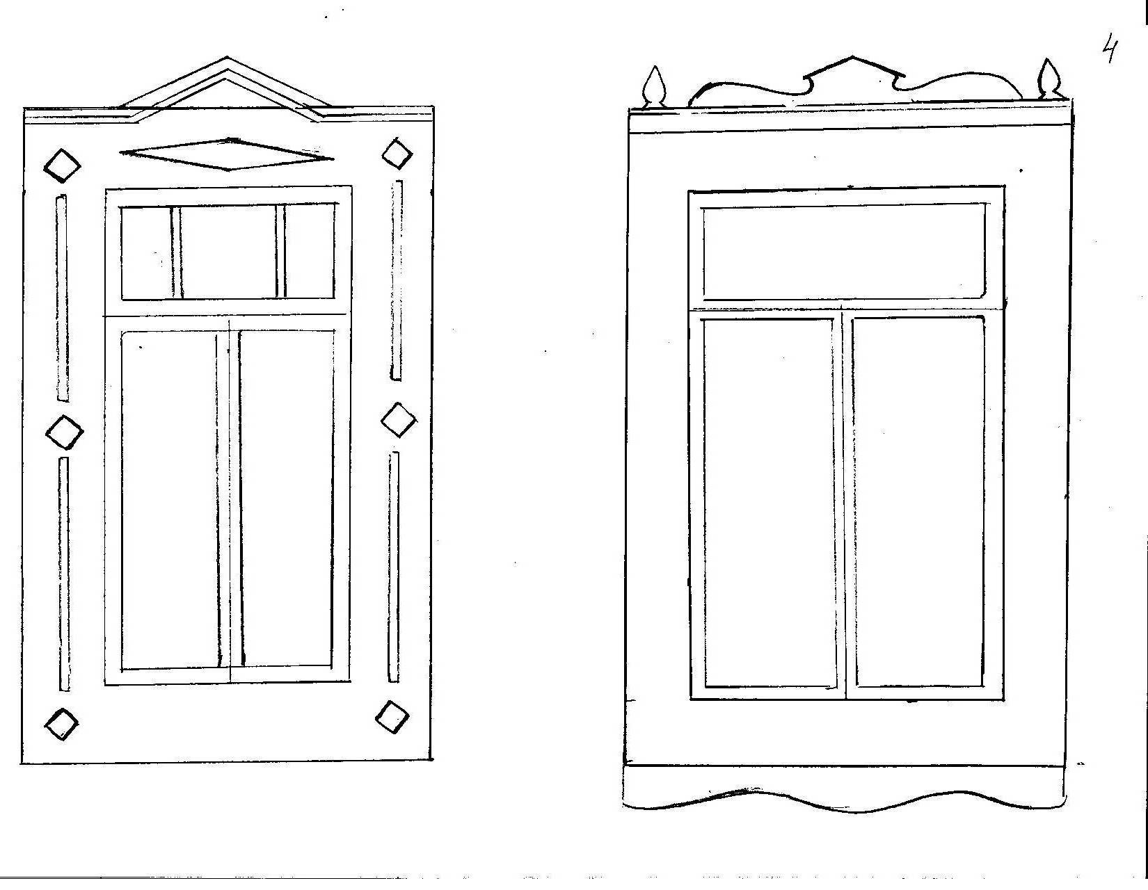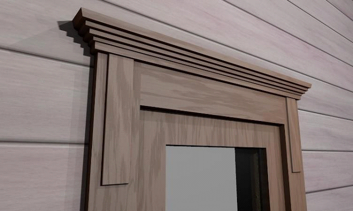 Oculto o a través de espigas (tacos). En la primera realización, los agujeros pasantes se preparan para la espiga desde la parte posterior de las plataformas. En los lugares de su fijación (a menudo en la carcasa) se preparan agujeros similares y se instalan tacos preparados en ellos. Luego, las plataformas simplemente "rellenan" la ventana. En la segunda versión, estos picos serán visibles, y el agujero en el clípeo será atravesado.