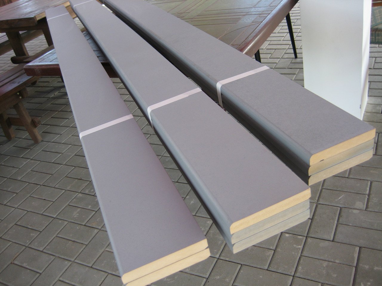 Las plataformas de MDF modernas atraen el precio más bajo. Al mismo tiempo, su variedad es bastante amplia: se pueden usar elementos rectos y redondeados en la base. La parte superior está cubierta con una película especial, que le permite estilizar cuadros inusuales. Además del diseño monofónico, puede encontrar fácilmente plataformas de MDF con imitación de superficies de madera, piedra y metal. El único inconveniente de tales productos es la imposibilidad de usarlos en el exterior. Incluso con un golpe corto de humedad, la base (MDF) se deteriorará rápidamente y requerirá reemplazo. Estas plataformas solo se pueden usar para enmarcar interiores de ventanas o puertas. Es cierto que se recomienda instalarlos con extrema precaución en baños con ventilación de calidad insuficiente (o de baja potencia). No necesitan cuidados especiales: basta con quitar el polvo o limpiar con una esponja ligeramente húmeda.
