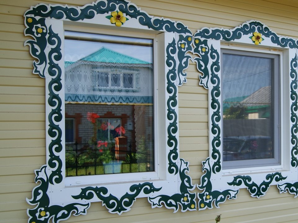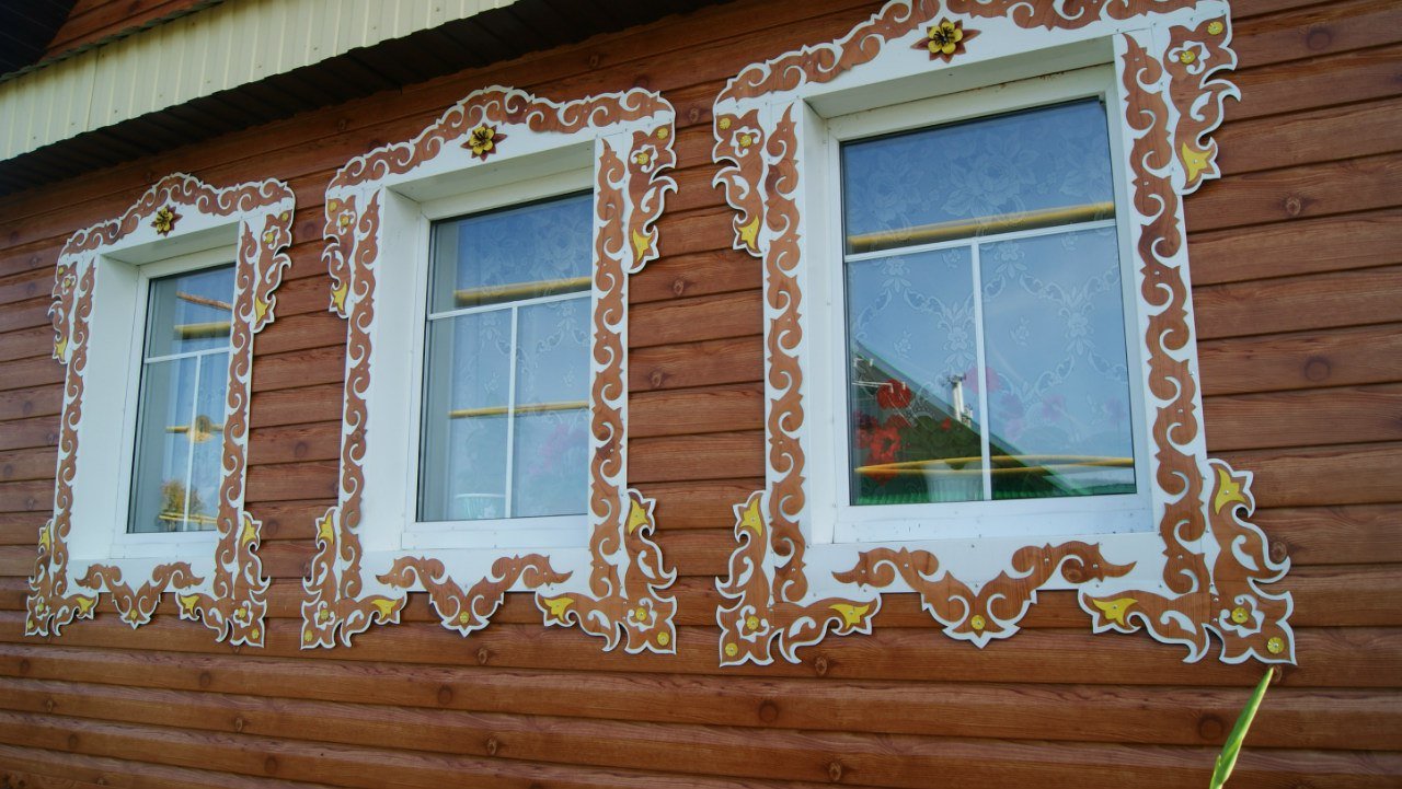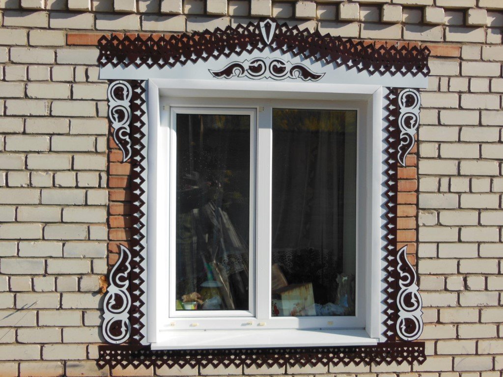 La instalación de plataformas de madera talladas no es difícil, si inicialmente se hicieron con medidas precisas de la abertura de la ventana, que se enmarcarán. Debe tenerse en cuenta que los patrones recortados en el marco deben coincidir exactamente. Después del "ajuste" final de las plataformas, se instalan. Las uñas de acabado (con tapas pequeñas) a menudo se usan para la fijación. Son invisibles en el marco ensamblado, por lo que son ideales para elementos decorativos. Además, puede conectar las partes individuales de la caja utilizando púas (clavijas). Hay una necesidad de ellos al instalar marcos de madera pesados e incluso voluminosos. Con un pequeño peso de plataformas, la necesidad de usar tacos simplemente desaparece.
